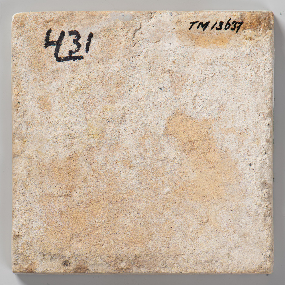 Tegel van keramiek met tinglazuur, voorstellende: or...