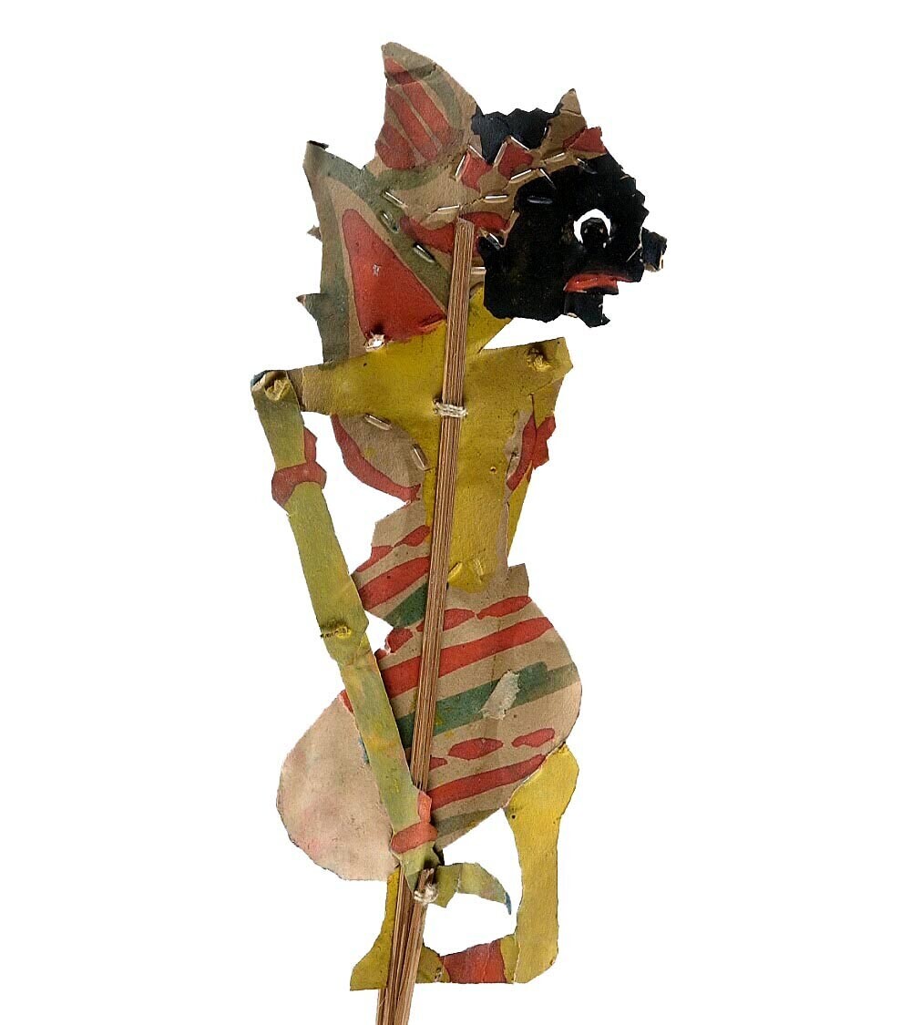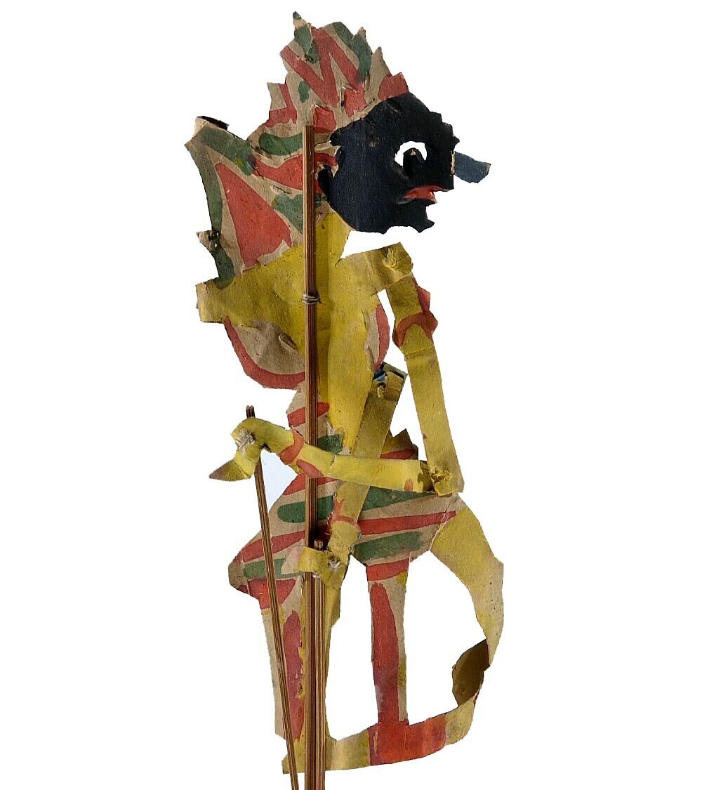 Gekleurde papieren wajangpop, mogelijk Petruk, behor...