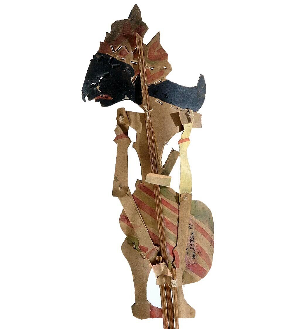 Gekleurde papieren wajangpop, een aap, behorende bij...