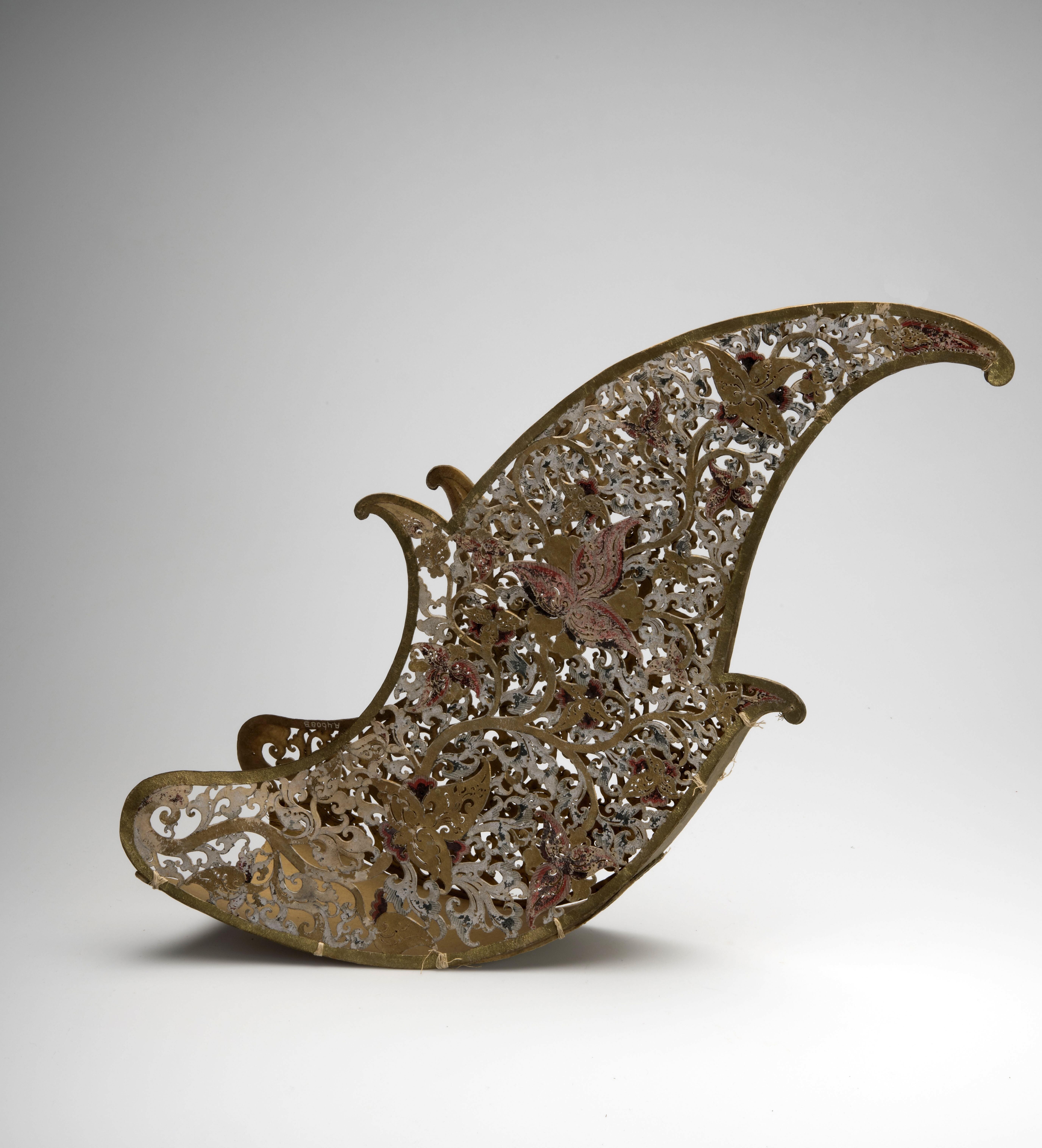 Bed voorhangsel met versieringen van gouddraad, mica...