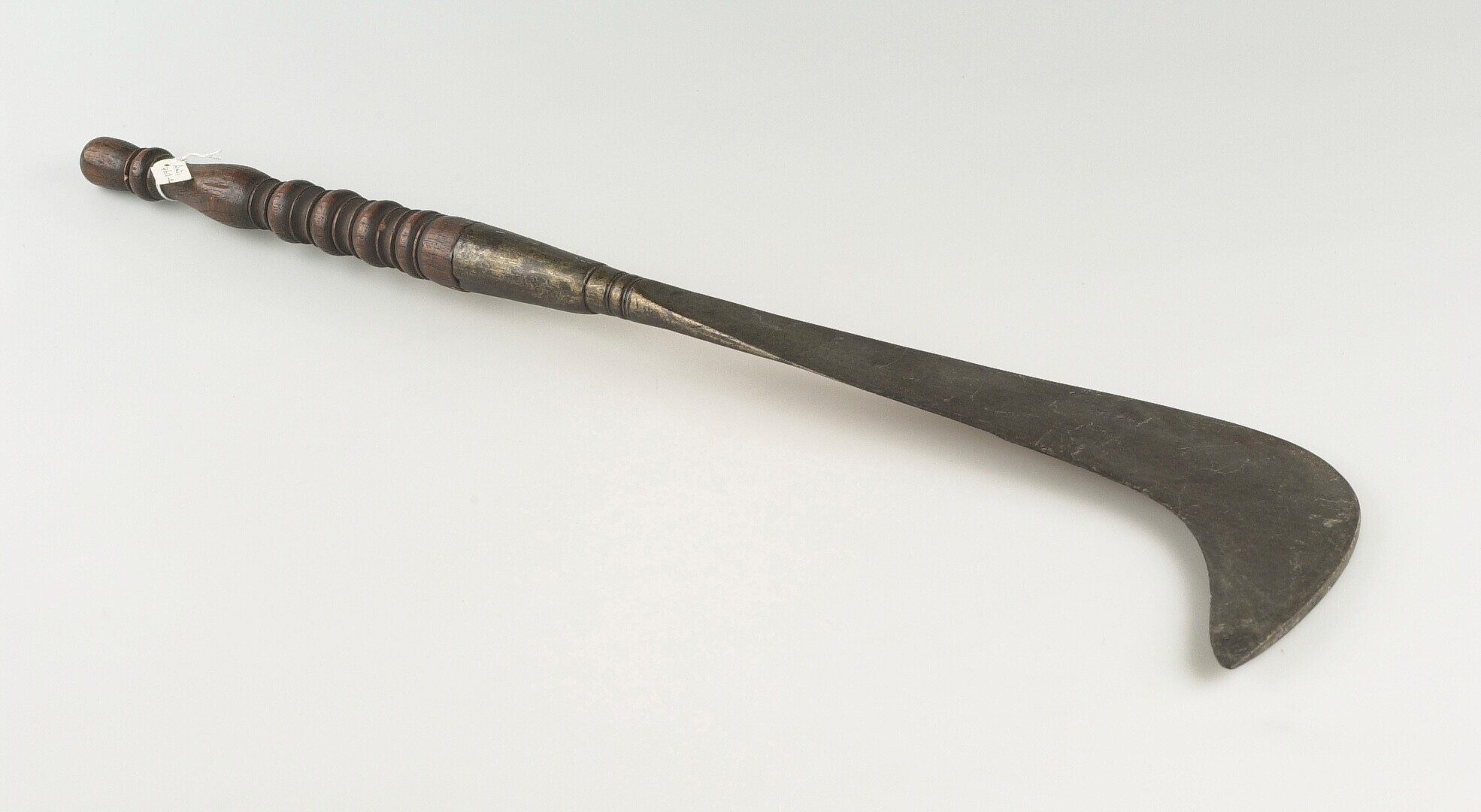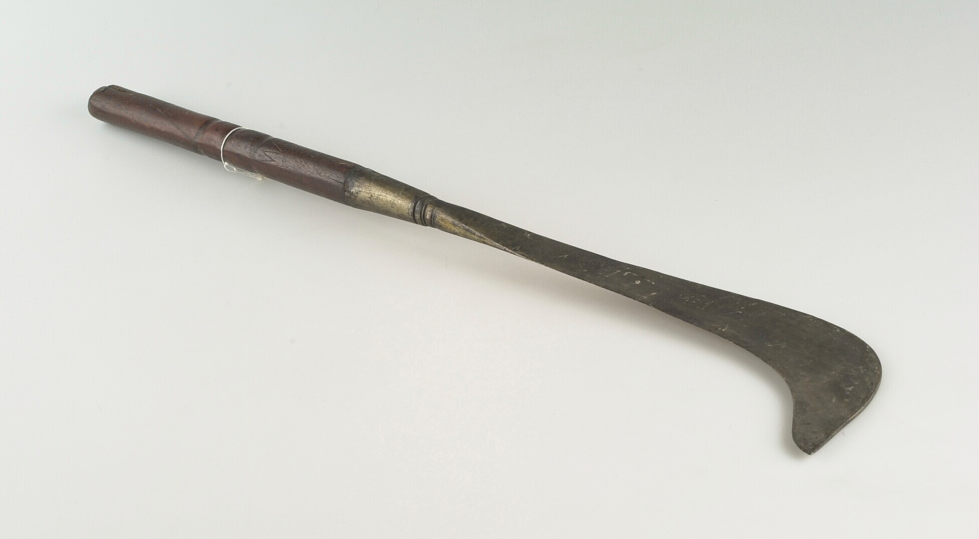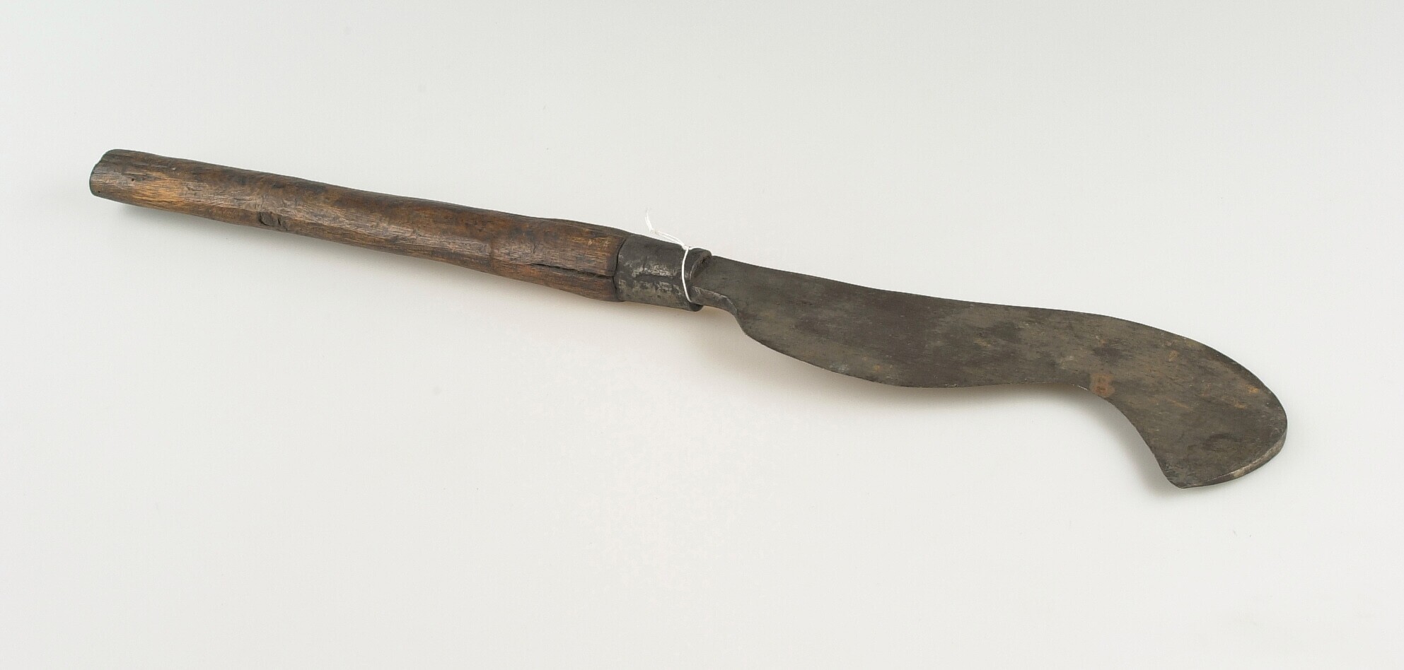 Kapmes, voorzien van houten handgreep met ingekraste...