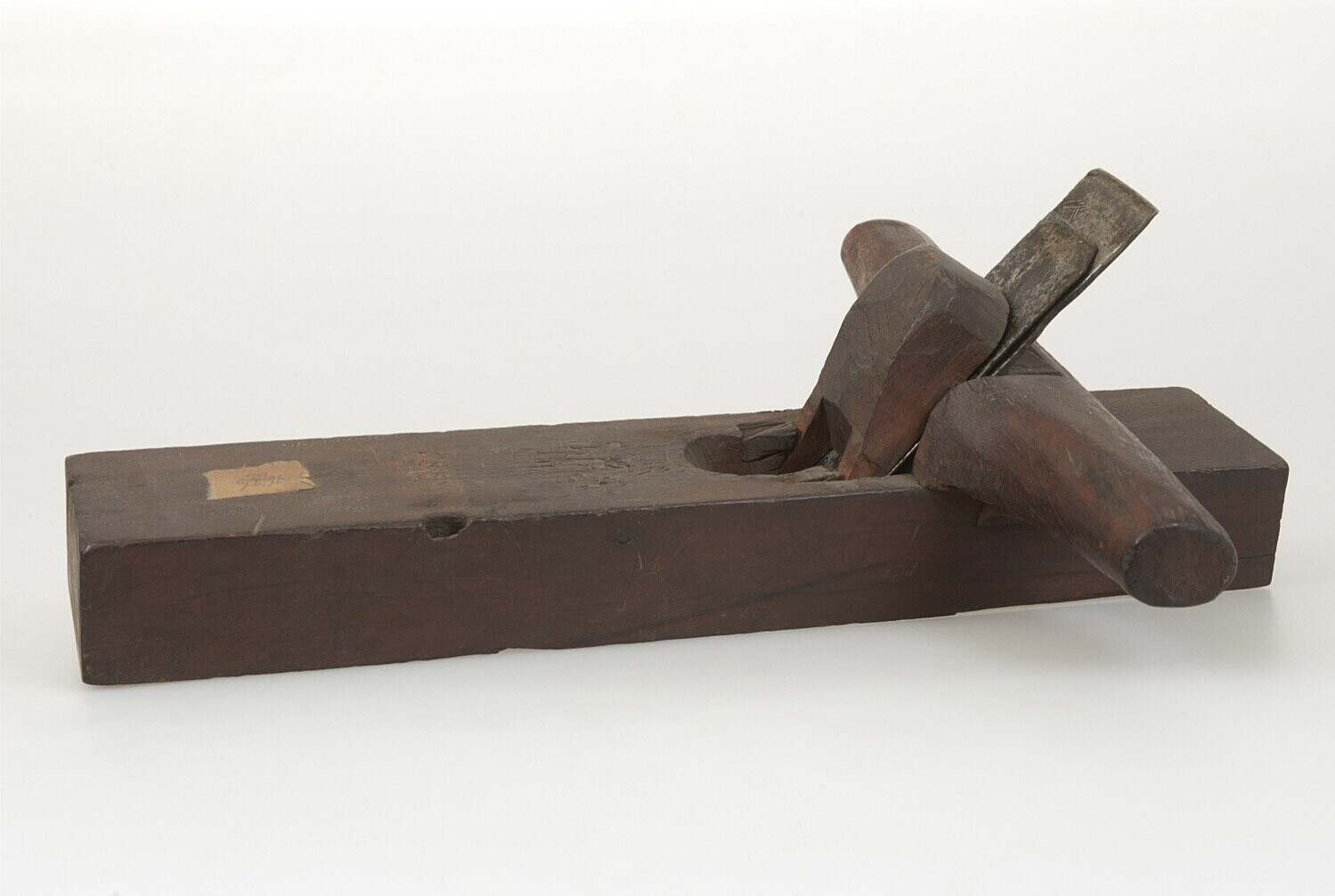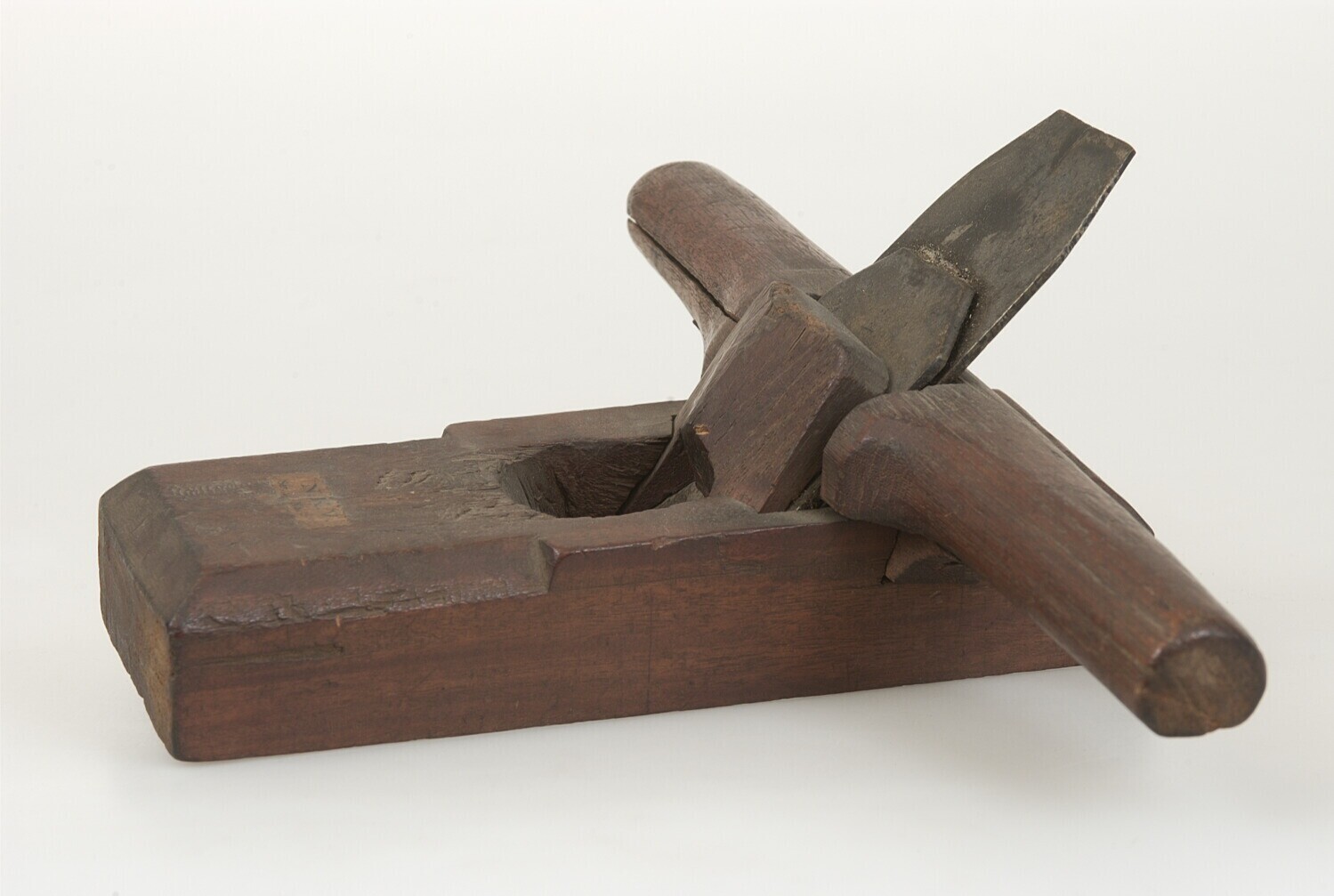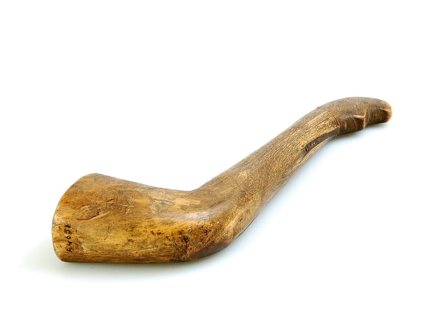 Kapmes, voorzien van houten handgreep met ingekraste...