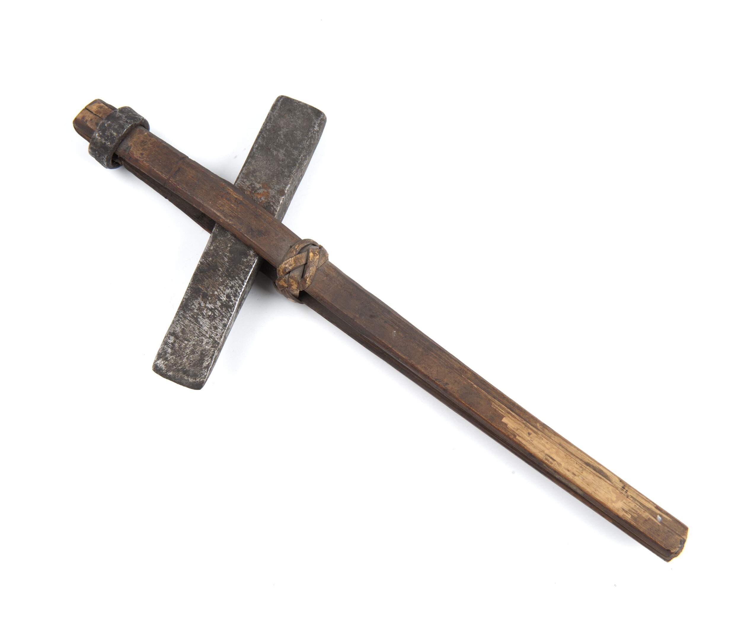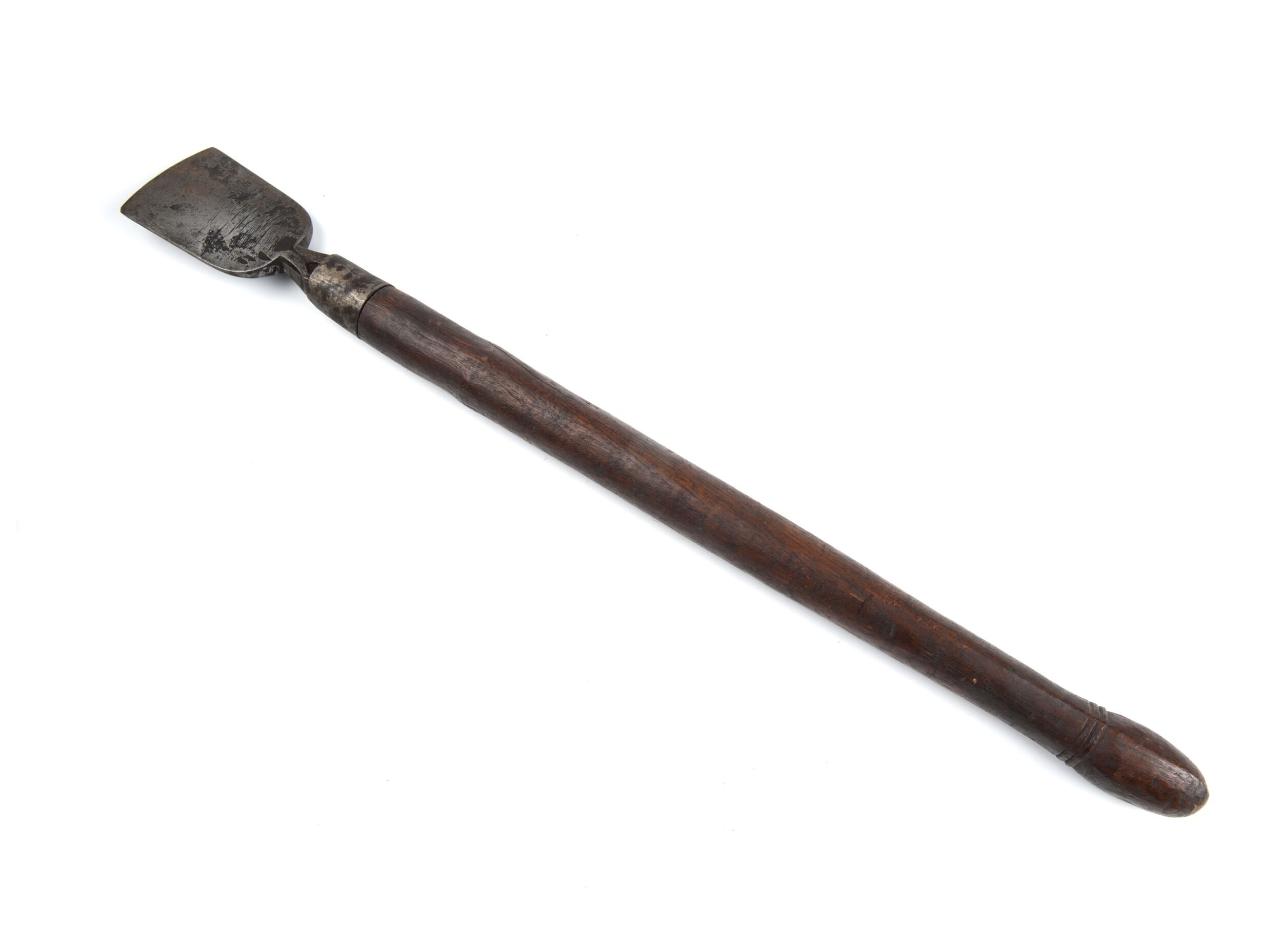 Dissel met ijzeren kling, met rotan aan steel bevestigd