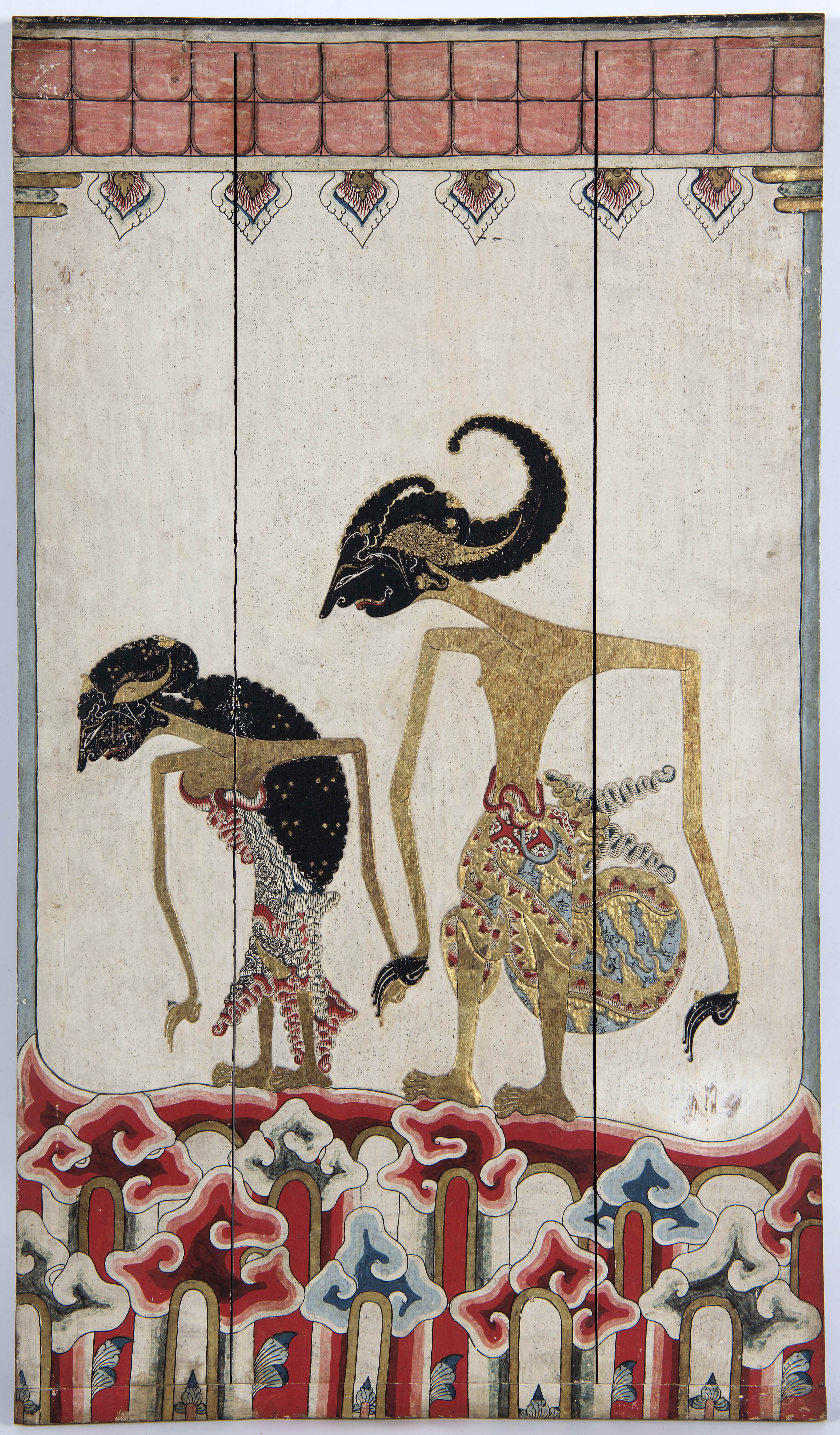 Gekleurde papieren wajangpop, behorende bij een set ...