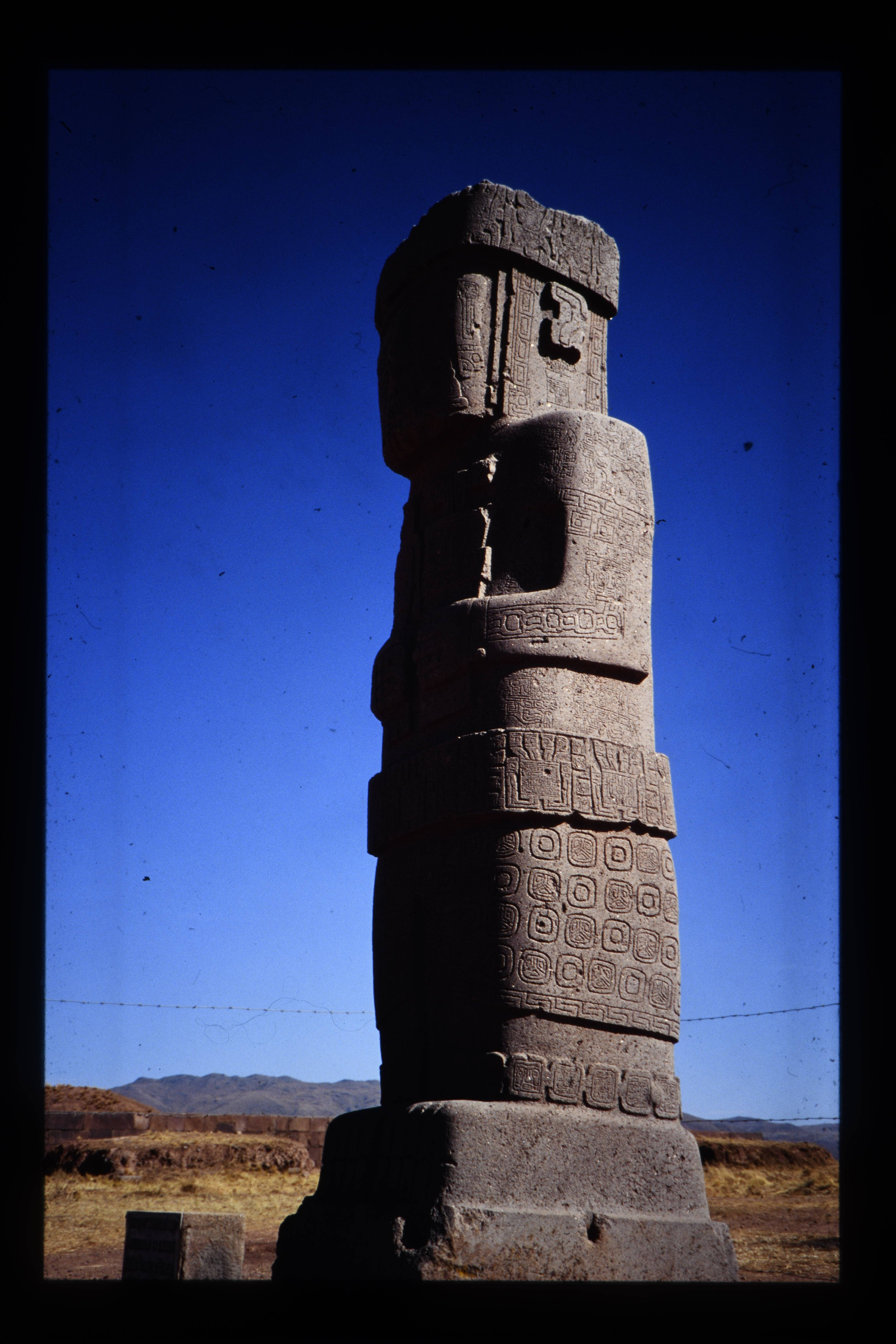 'Ruïne van Tiwanaku; monoliet; vermoedelijk El Fraile.'