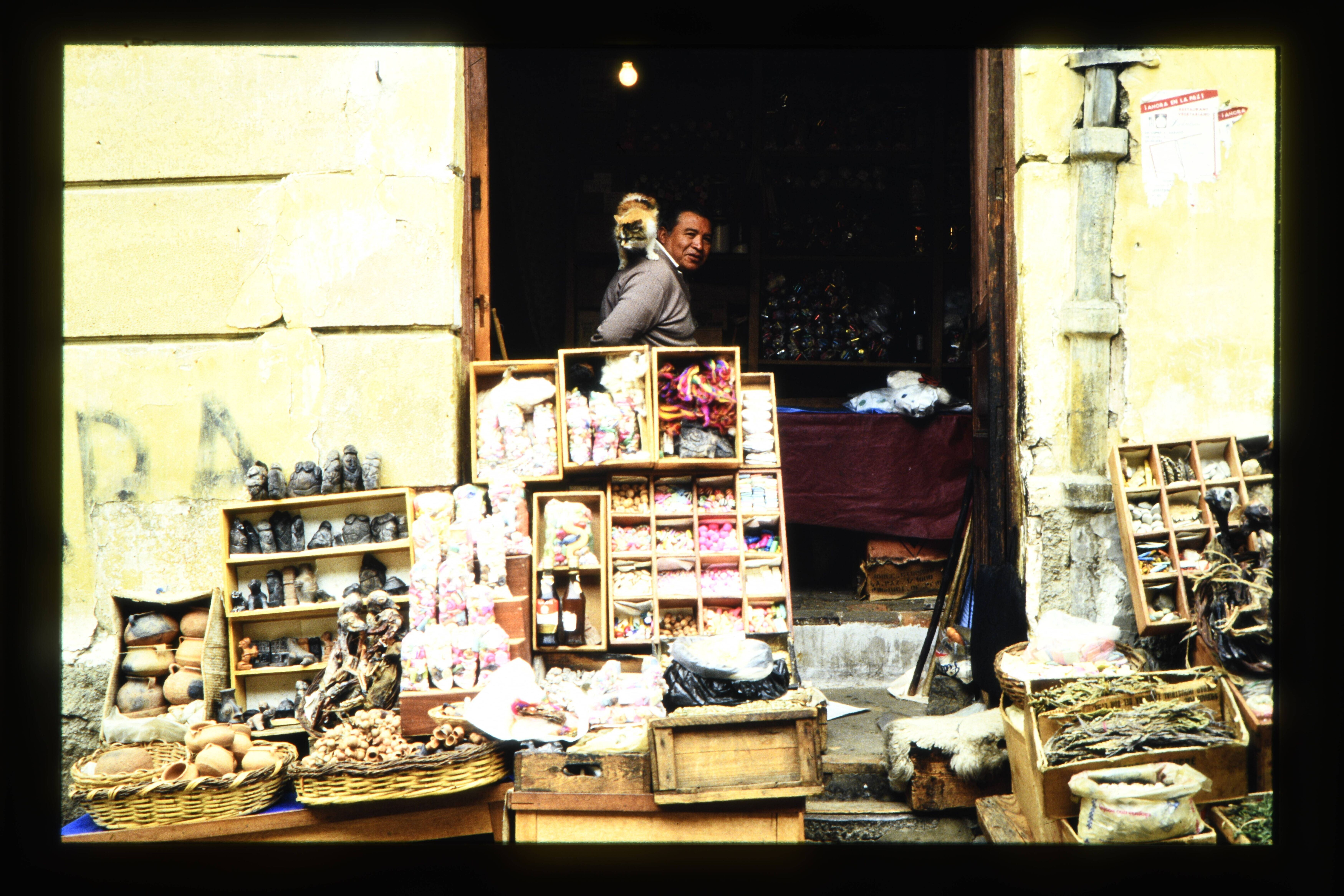 'La Paz, de heksenmarkt; hier worden snoepjes en bee...