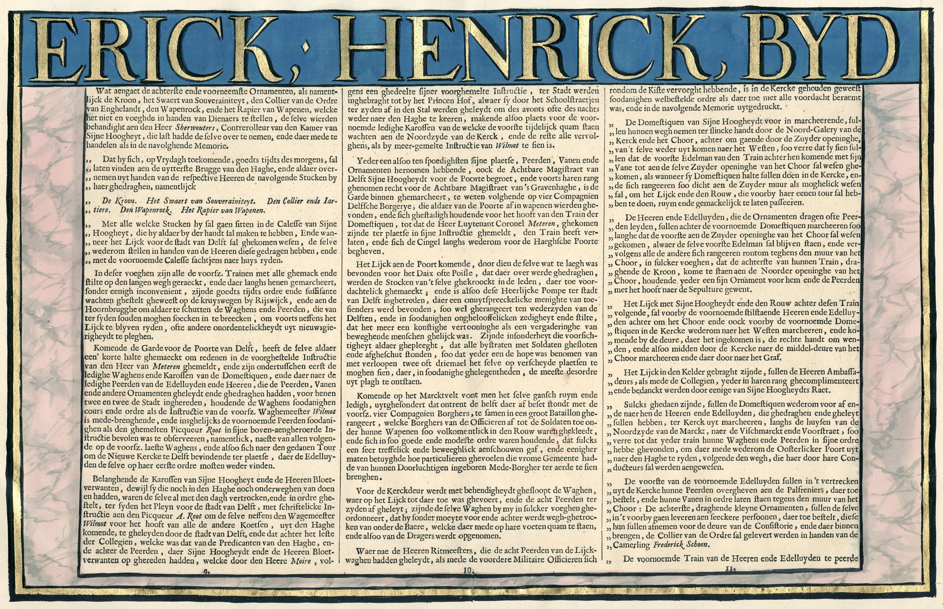 Programma van de begrafenis van Frederik Hendrik, p....