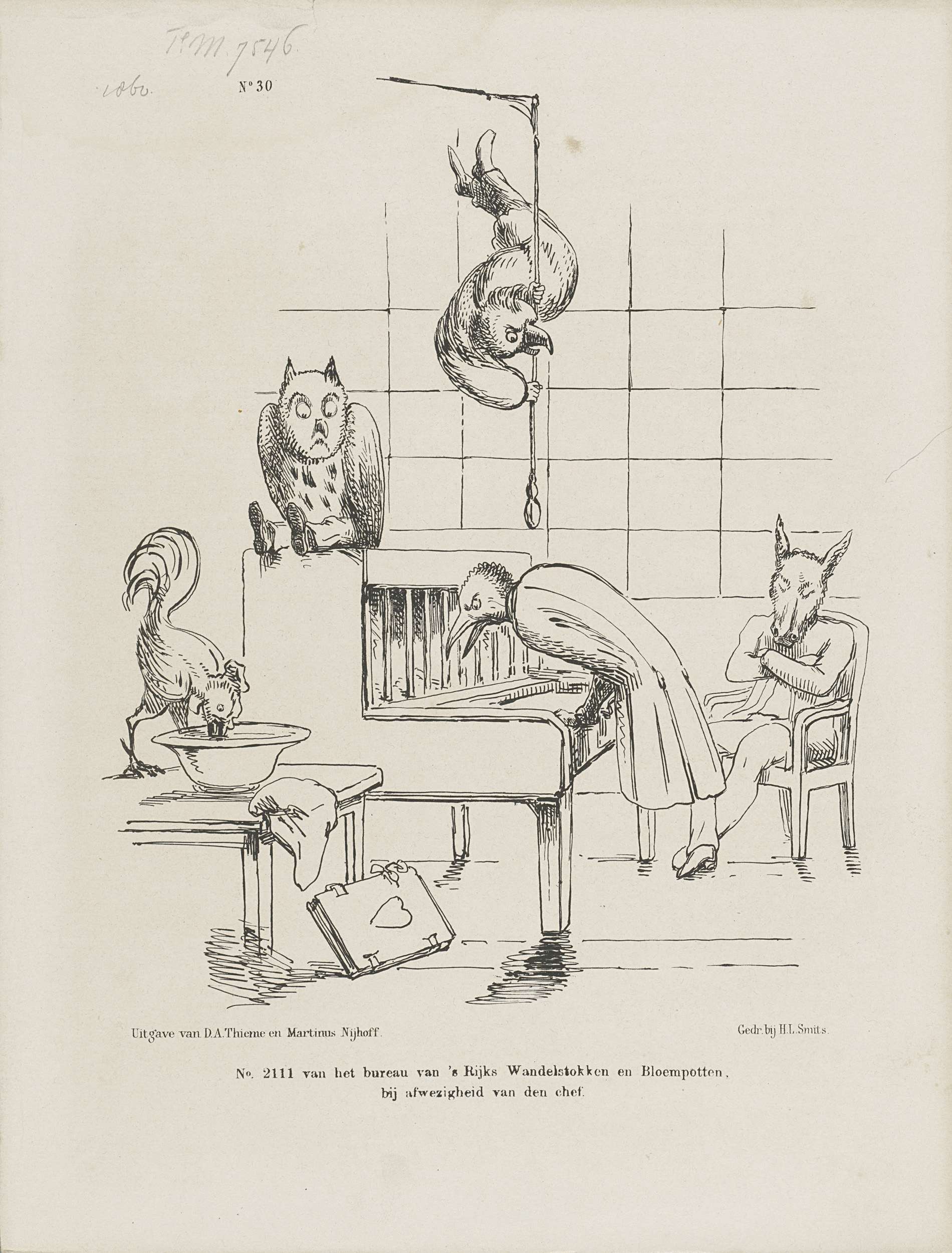 Spotprent op ledigheid van ambtenaren bij afwezighei...