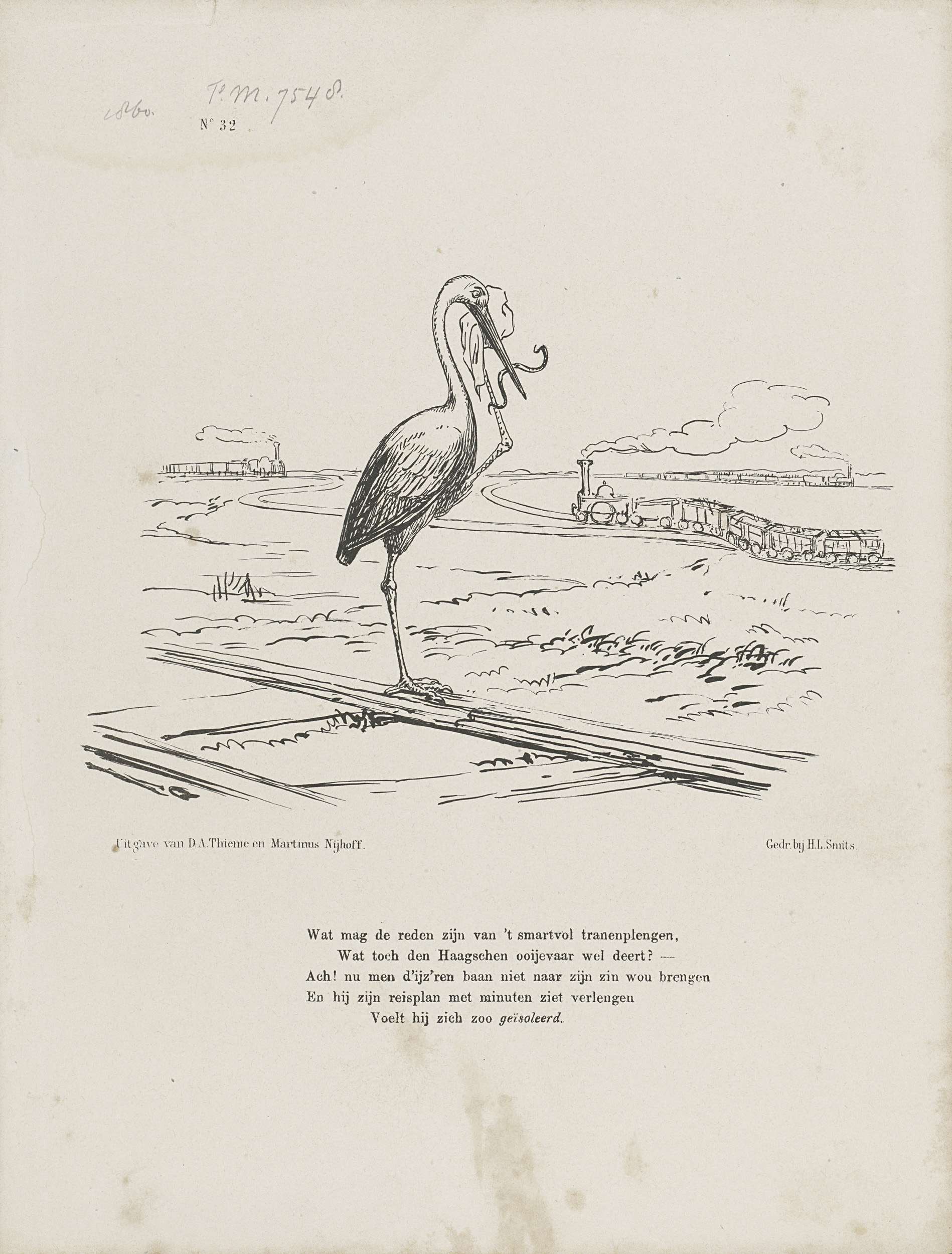 Spotprent op de richting van de spoorweg bij Den Haa...