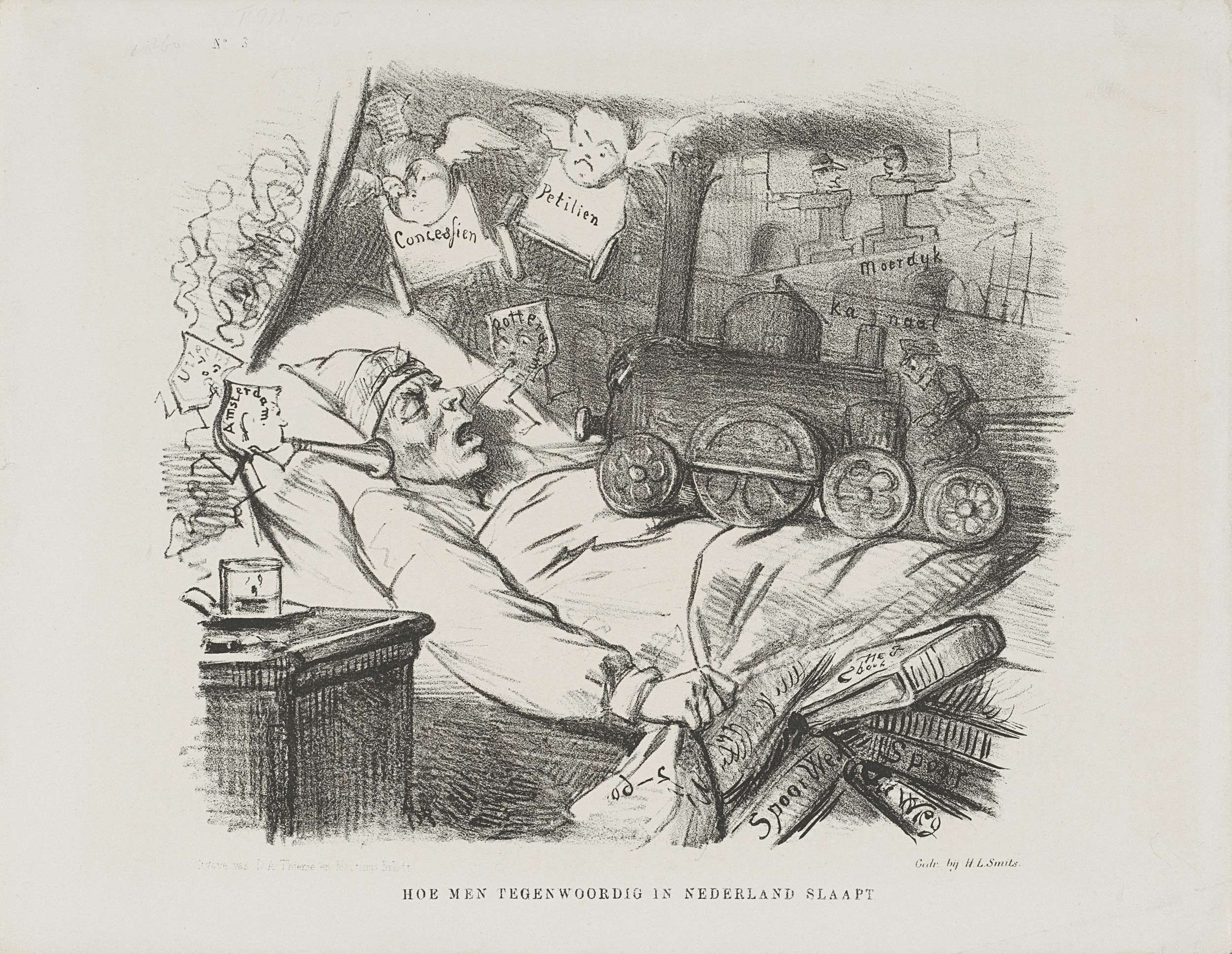 Spotprent op uitbreiding van het spoorwegnet in Nede...