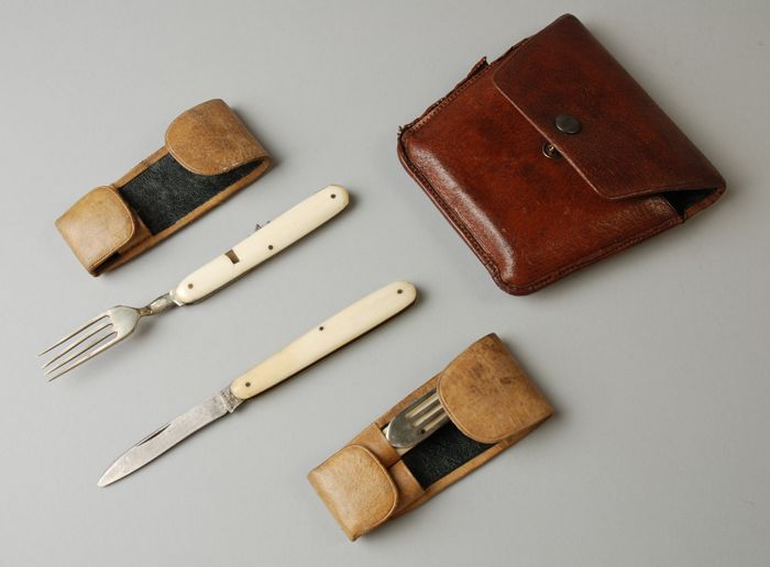 Bruin leren etui met daarin twee leren hoesjes waari...