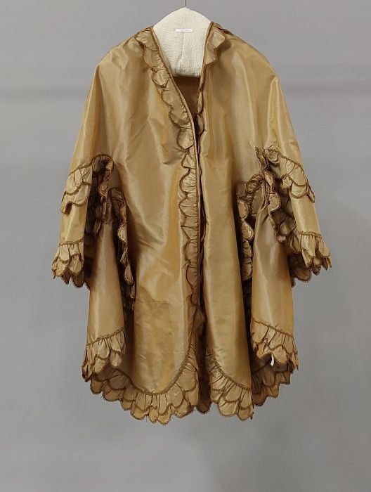 Kleine cape van goudbruin changeant zijden met ruche...