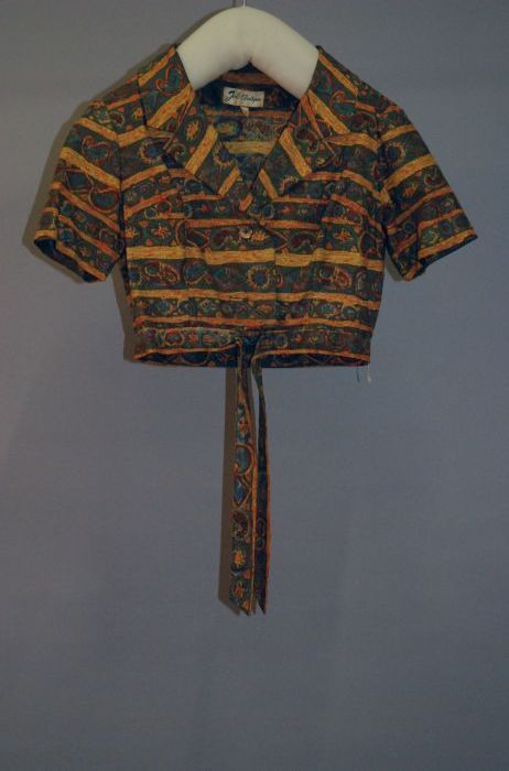 Jurk met kort jasje, groen met oranje bloempatroon, ...
