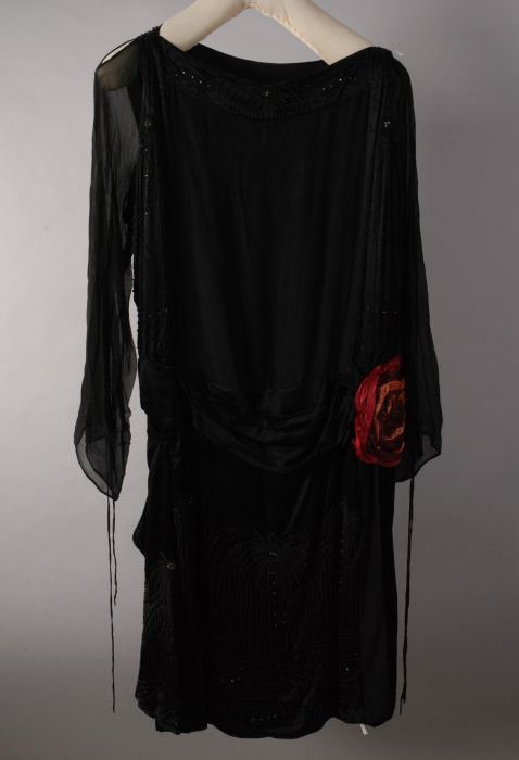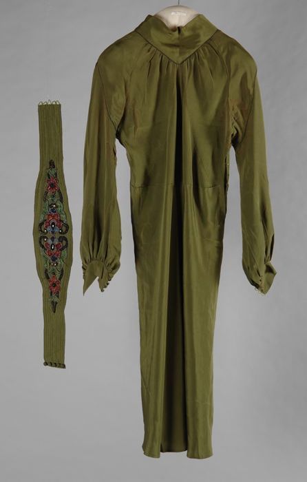 Groene crêpe zijden jurk, met tailleband met kralenb...