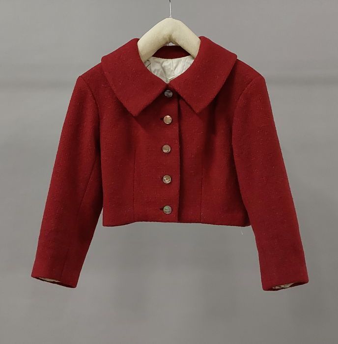 Fuchsia-roze grof geweven tweed deux-pièces, kort ja...