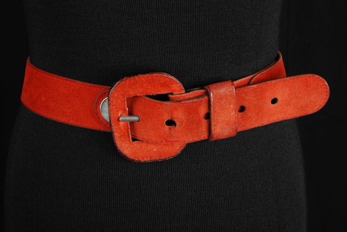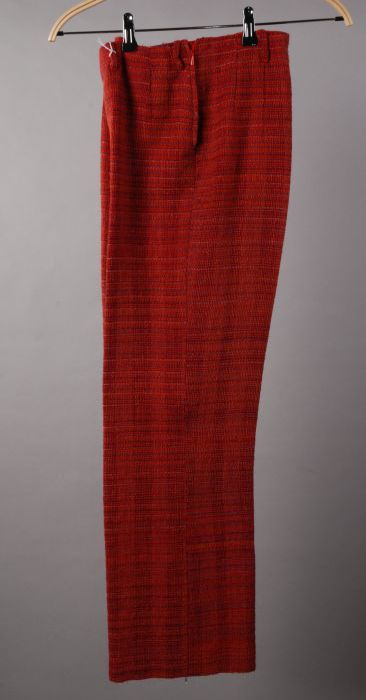 Oranje-rood wollen broekpak bestaand uit jasje en la...