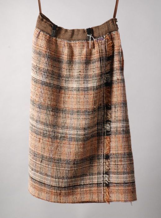 Lange wijde rok van wollen damast met bruine en donk...