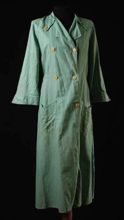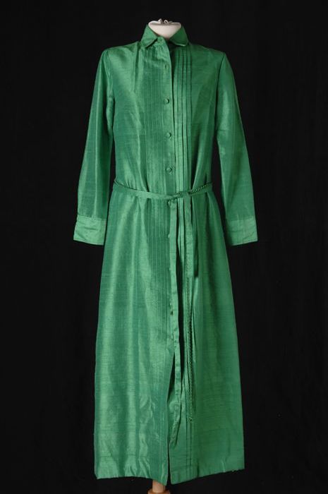 Lange felgroene zijden doorknoopjurk met lange mouwen