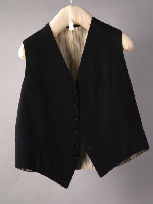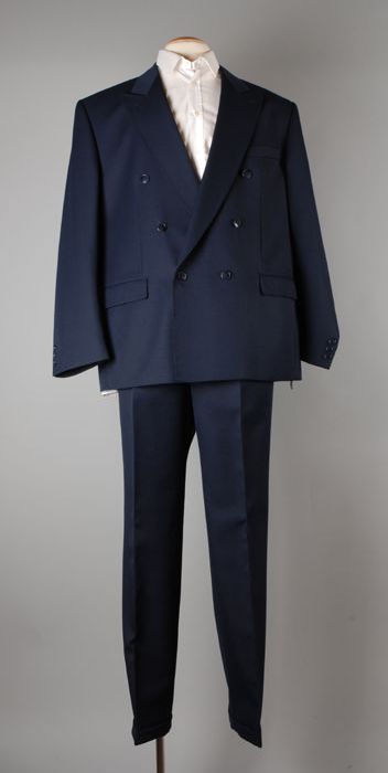 Zwart herenkostuum in stijlkeper binding, etiket "Me...