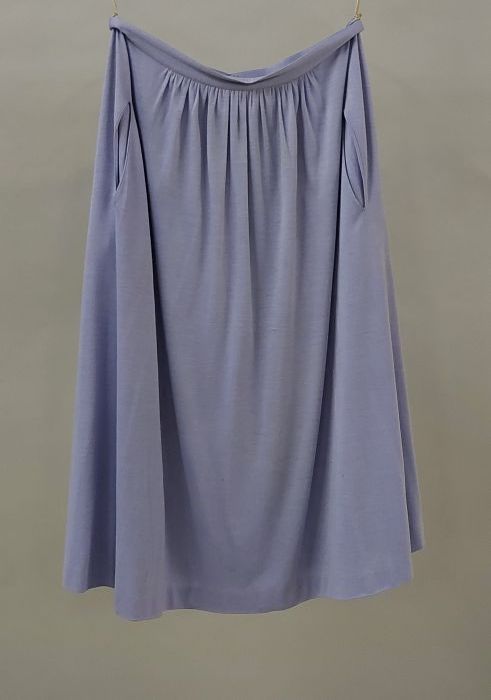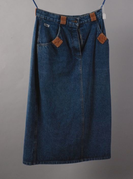 Kobalt-blauw jasje, lange broek en korte rok, grof g...