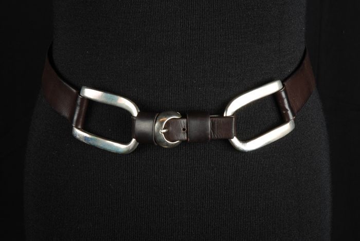 Lange bruine damesmantel, getailleerd model met dubb...