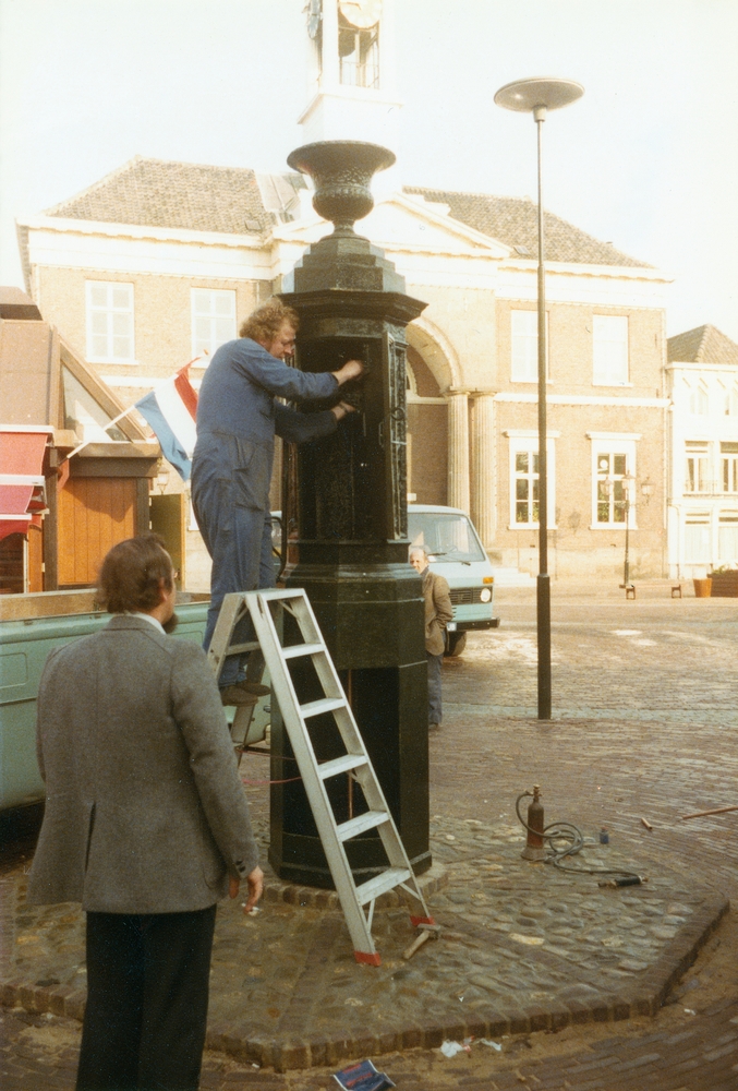 Plaatsing stadspomp op de Markt