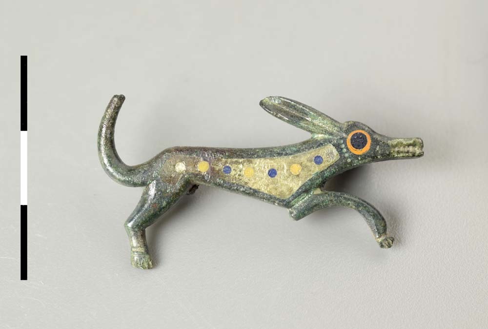 Geëmailleerde figuurfibula van brons uit de Romeinse...