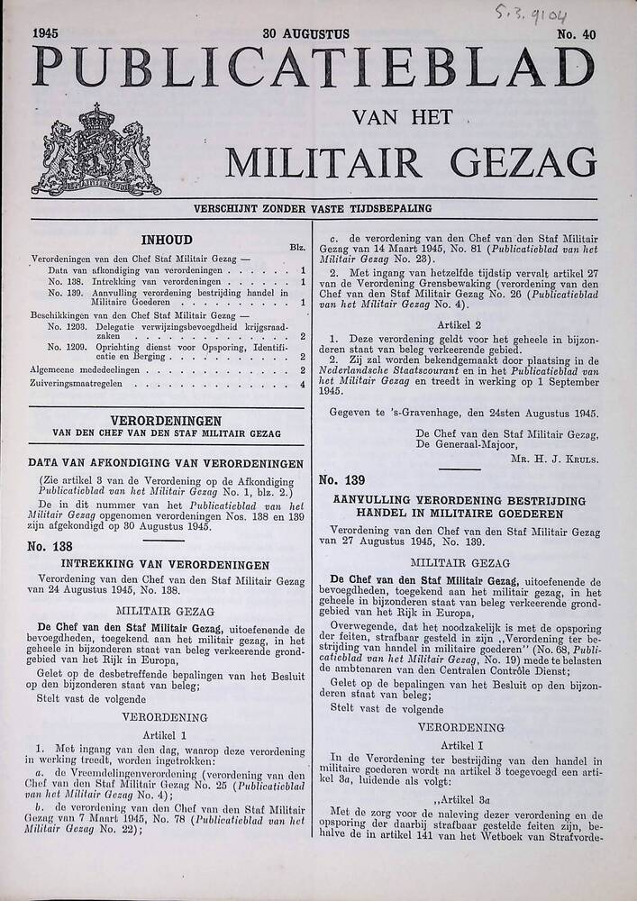 Publicatieblad van het Militair Gezag, nr 40, 30 aug...