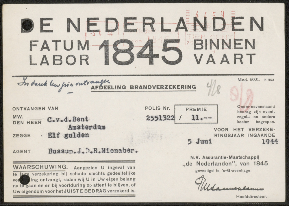 Kwitantie De Nederlanden 1845 Fatum Labor Binnenvaart