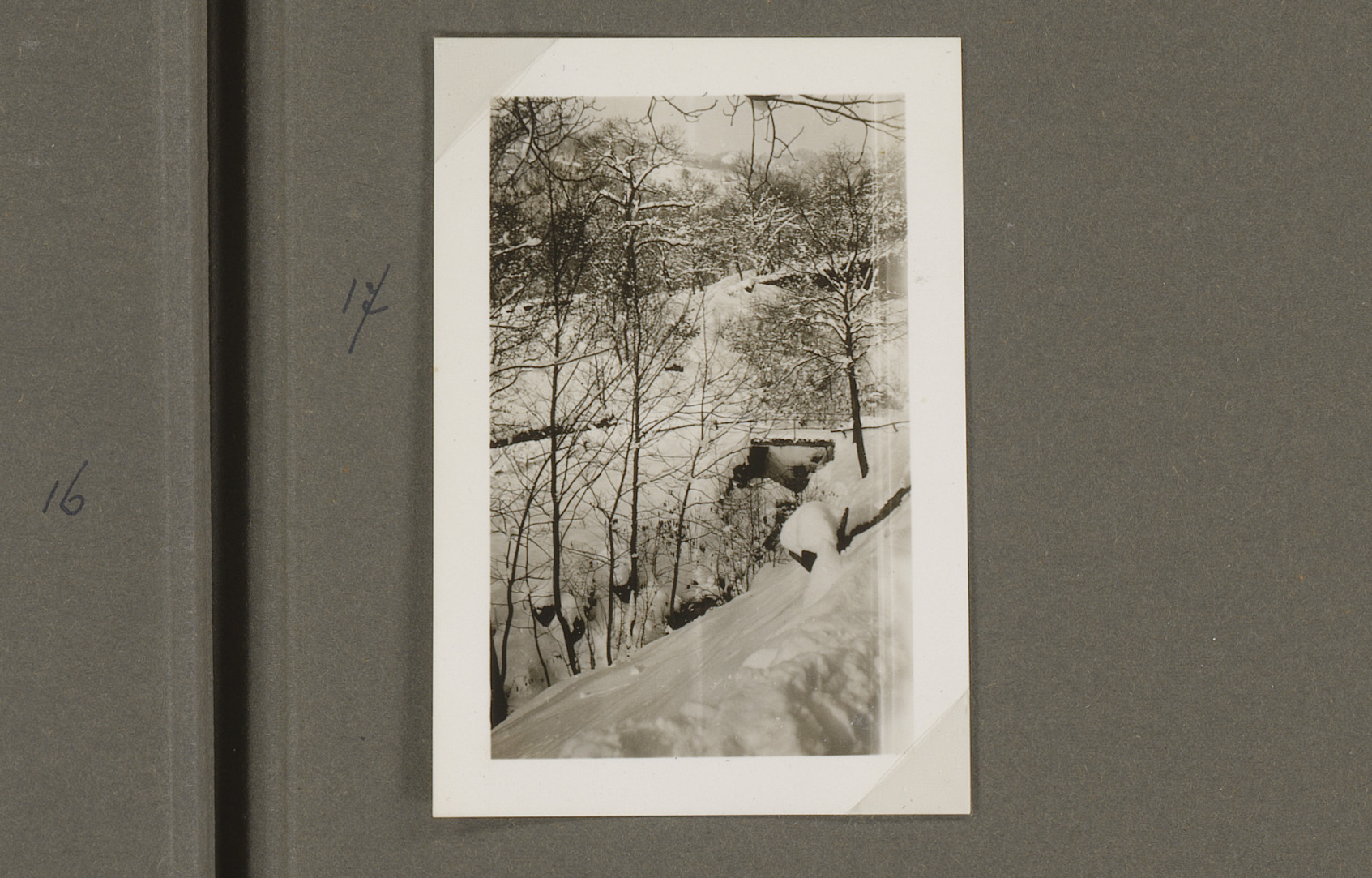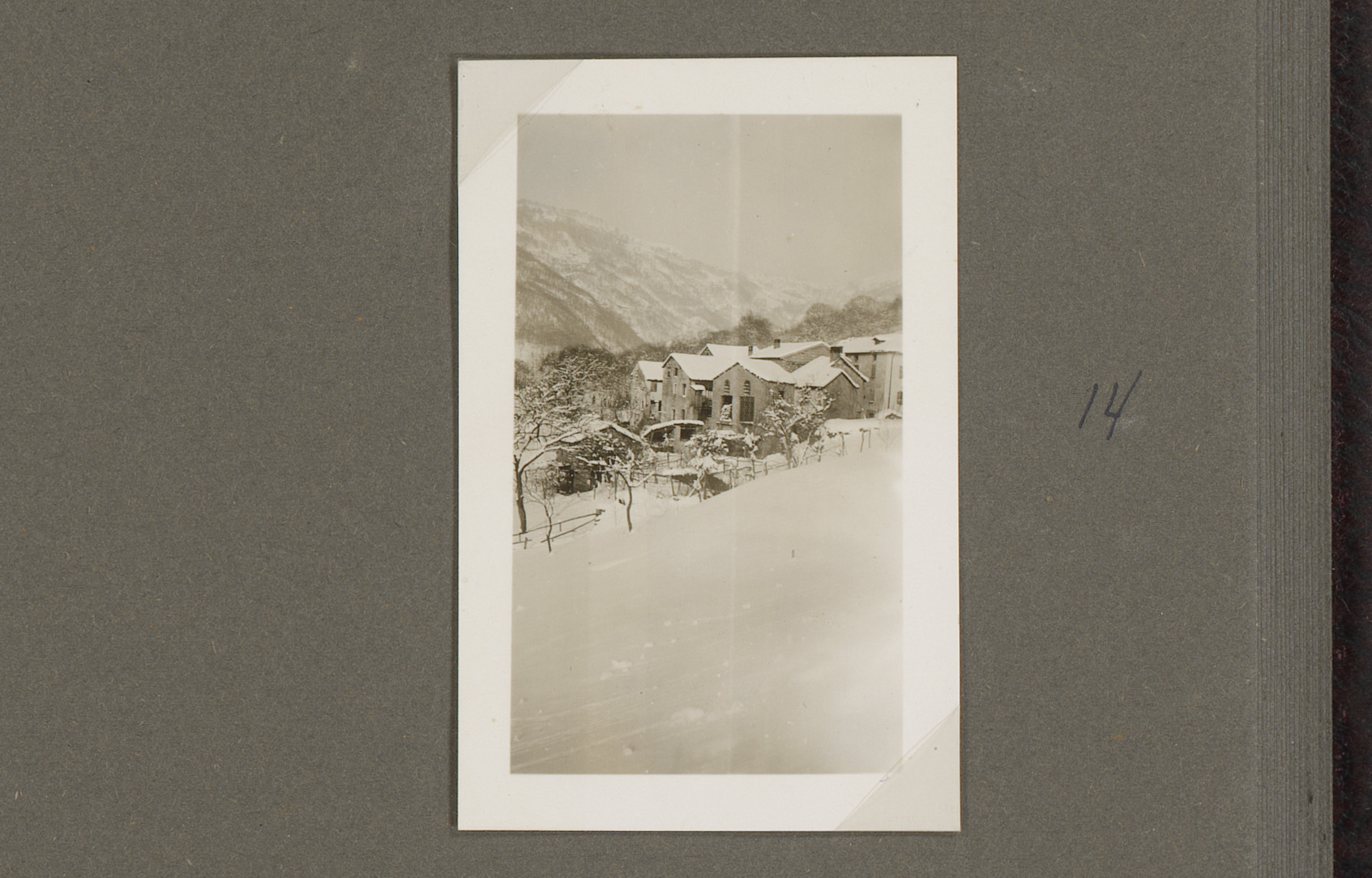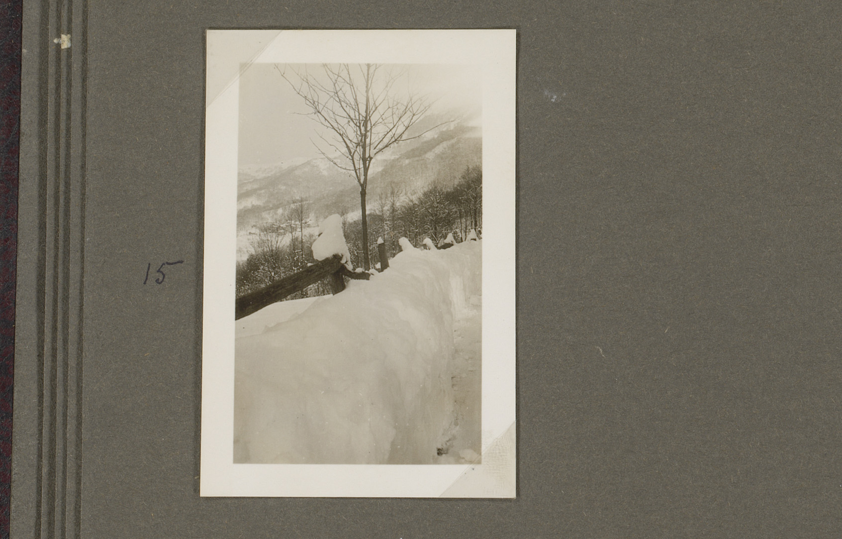 Besneeuwd hek op de weg tussen Bettagno en Odogno, Z...