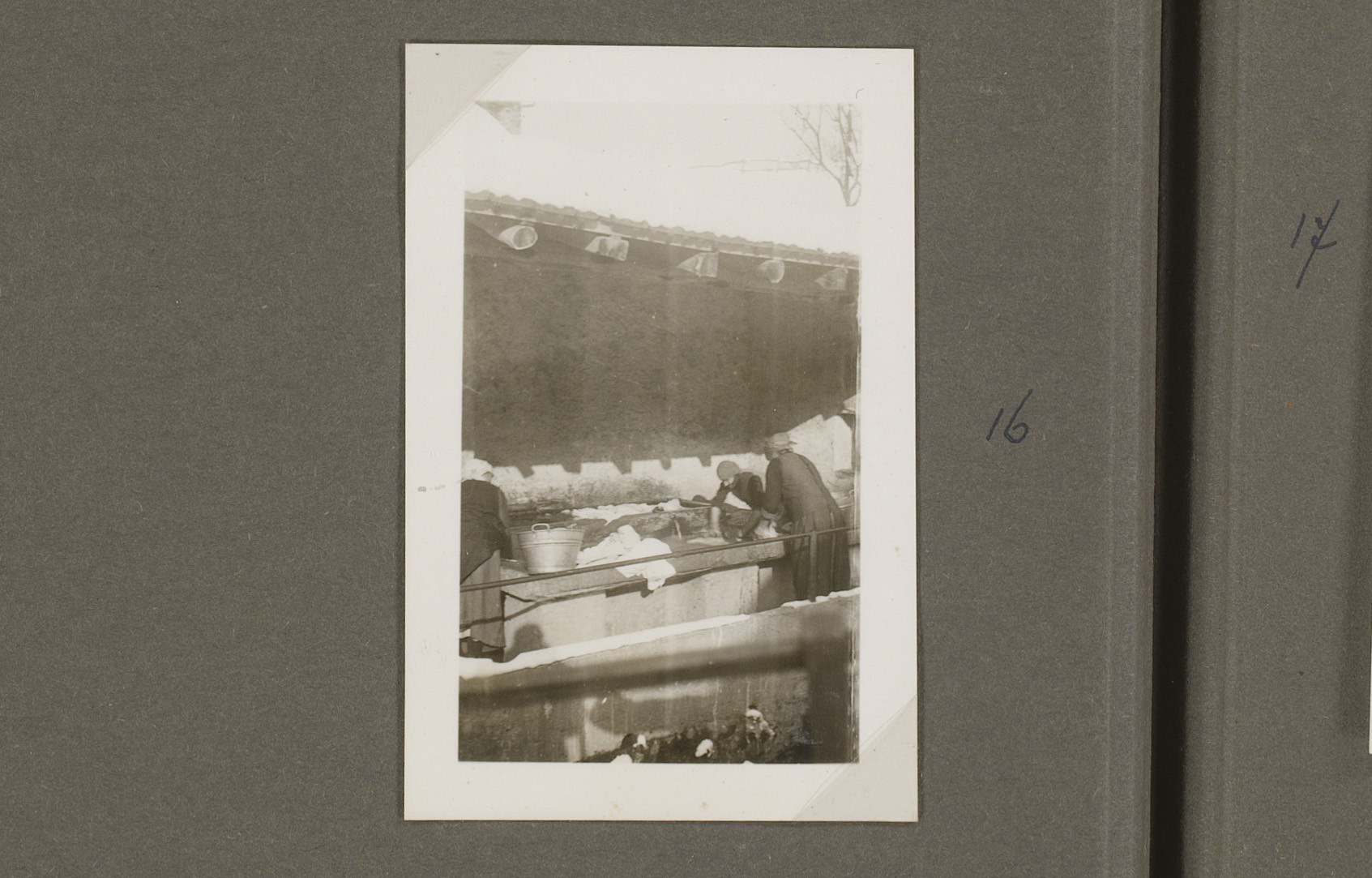 Twee vrouwen doen de was in Odogno, Zwitserland