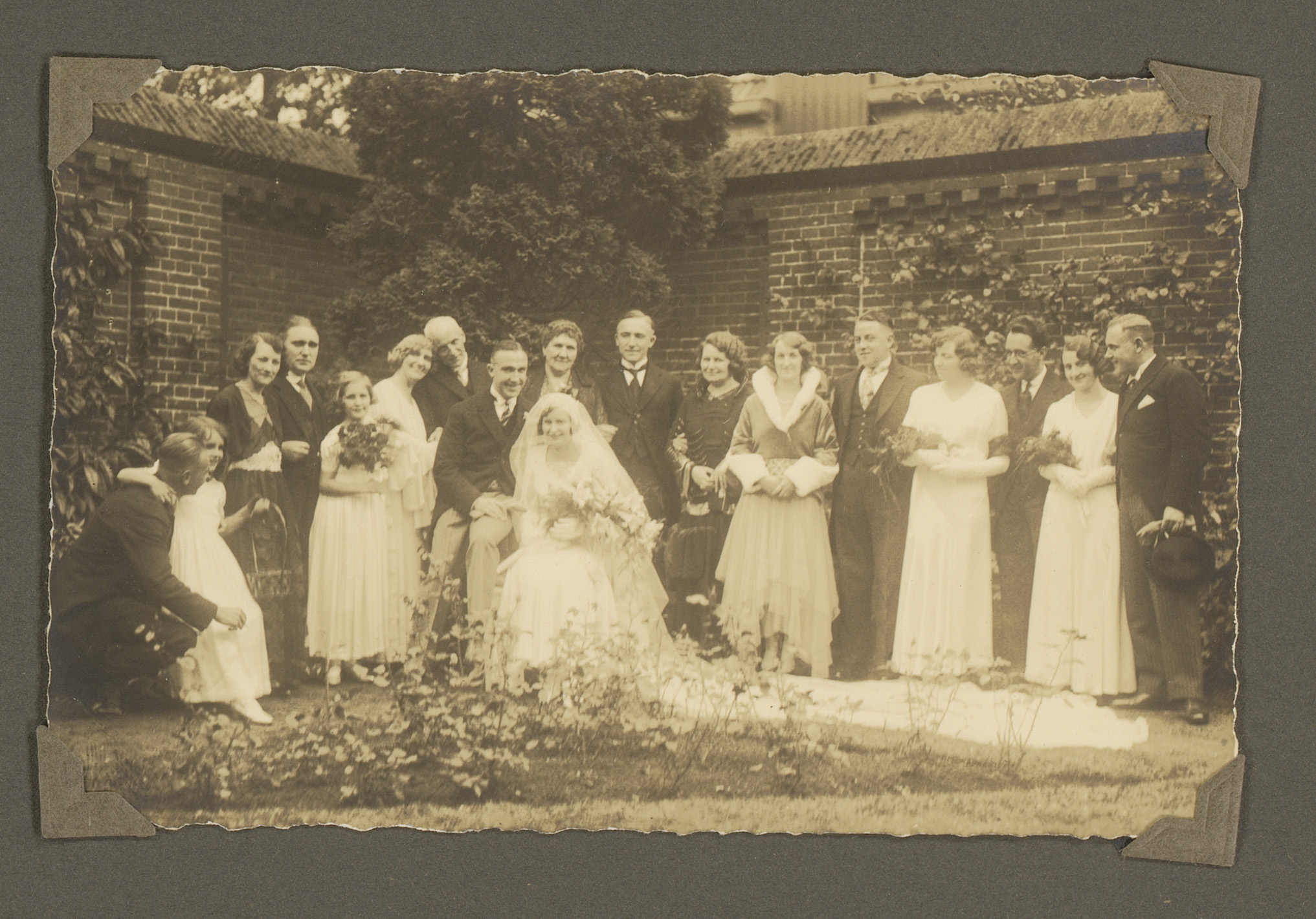 Groepsportret ter ere van een bruiloft