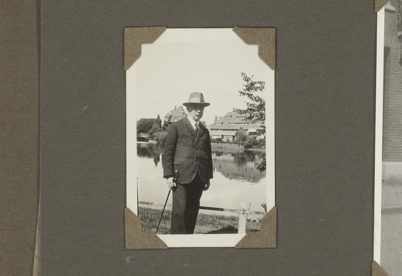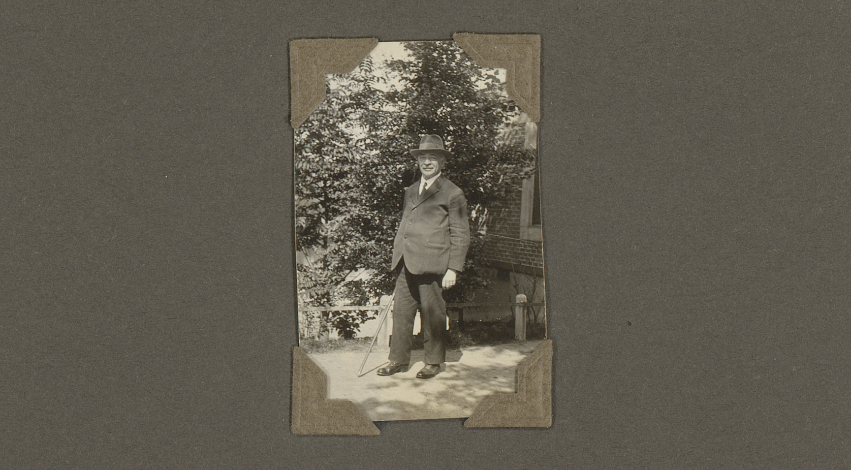 Portret van een man met hoed en wandelstok