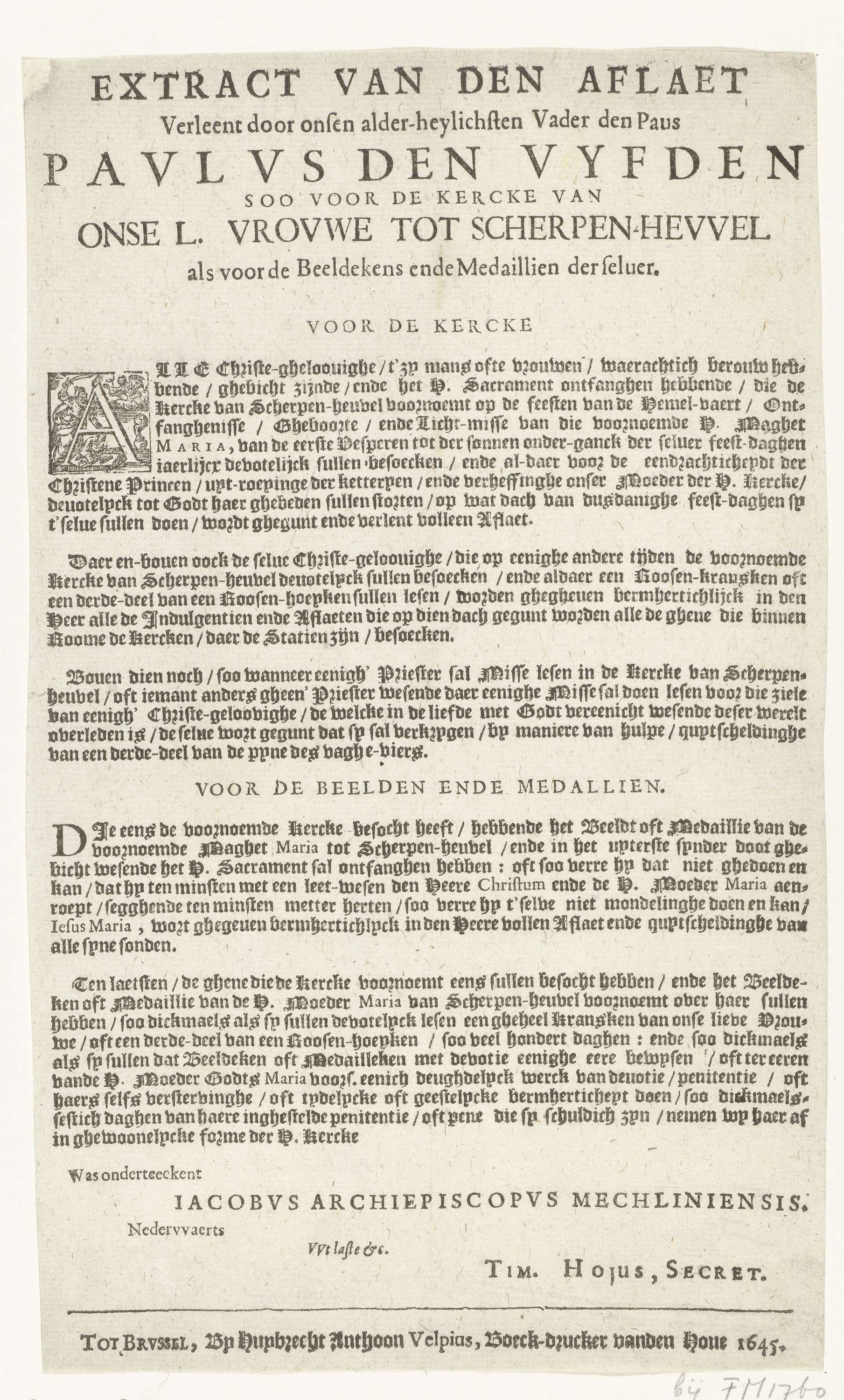 Extract van de aflaat voor de kerk van Scherpenheuve...
