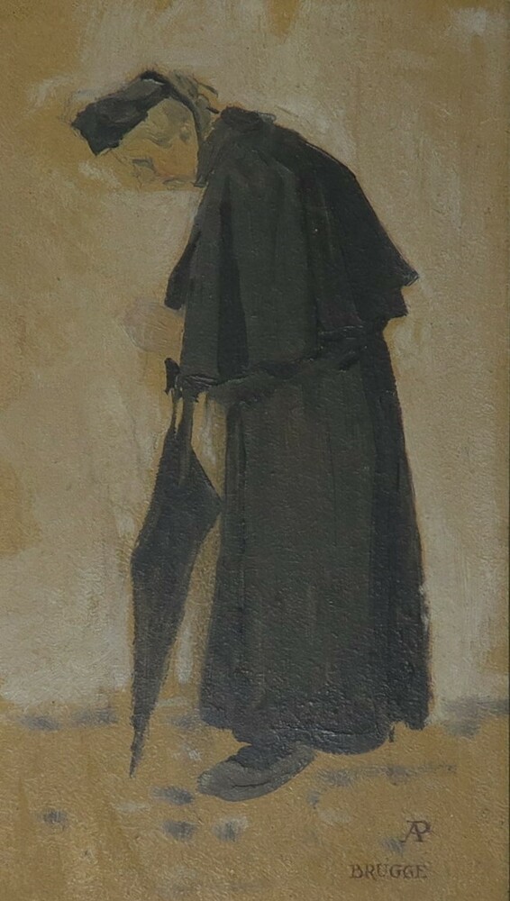 Oud vrouwtje in Brugse kapmantel, Brugge, België