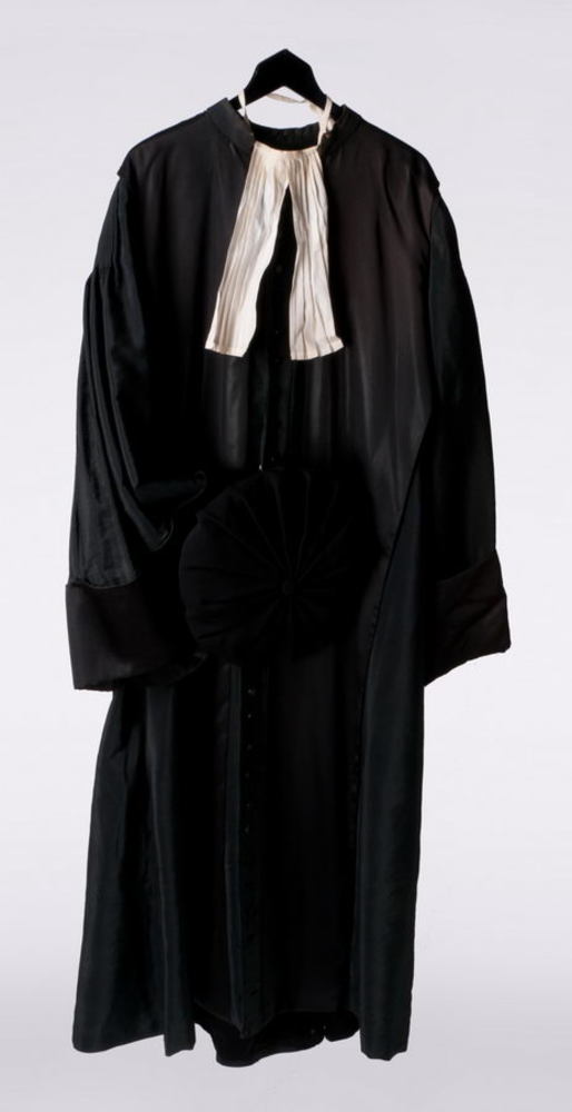 Toga met baret en befjes, gedragen door een rechter ...