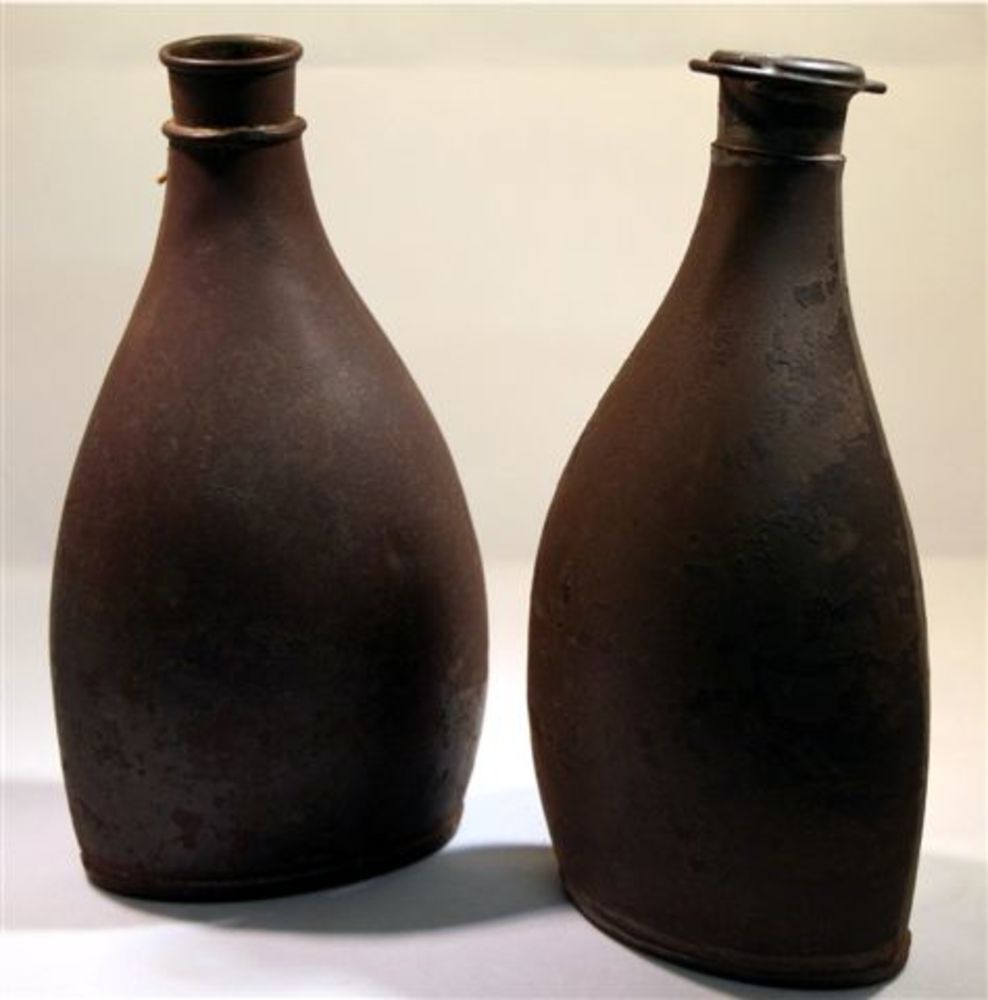 veldflessen. Afgeplat flesvormig model met kurk als ...