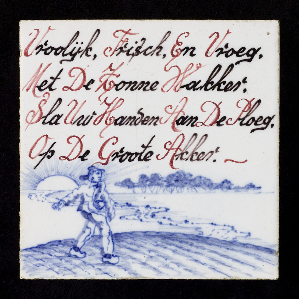 Tegel van keramiek met tinglazuur, voorstellende: Sp...