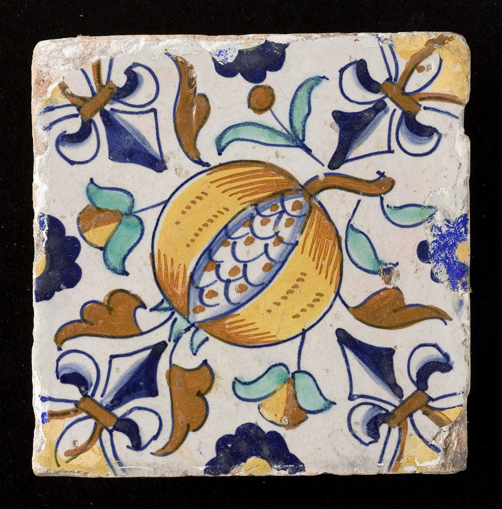 Tegel van keramiek met tinglazuur, voorstellende: or...