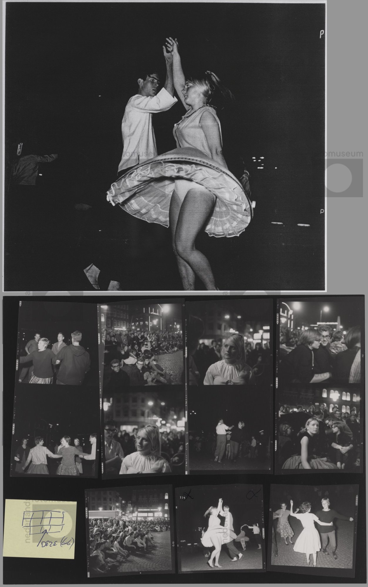 Amsterdam. Volksdansen op de Dam op blote voeten.