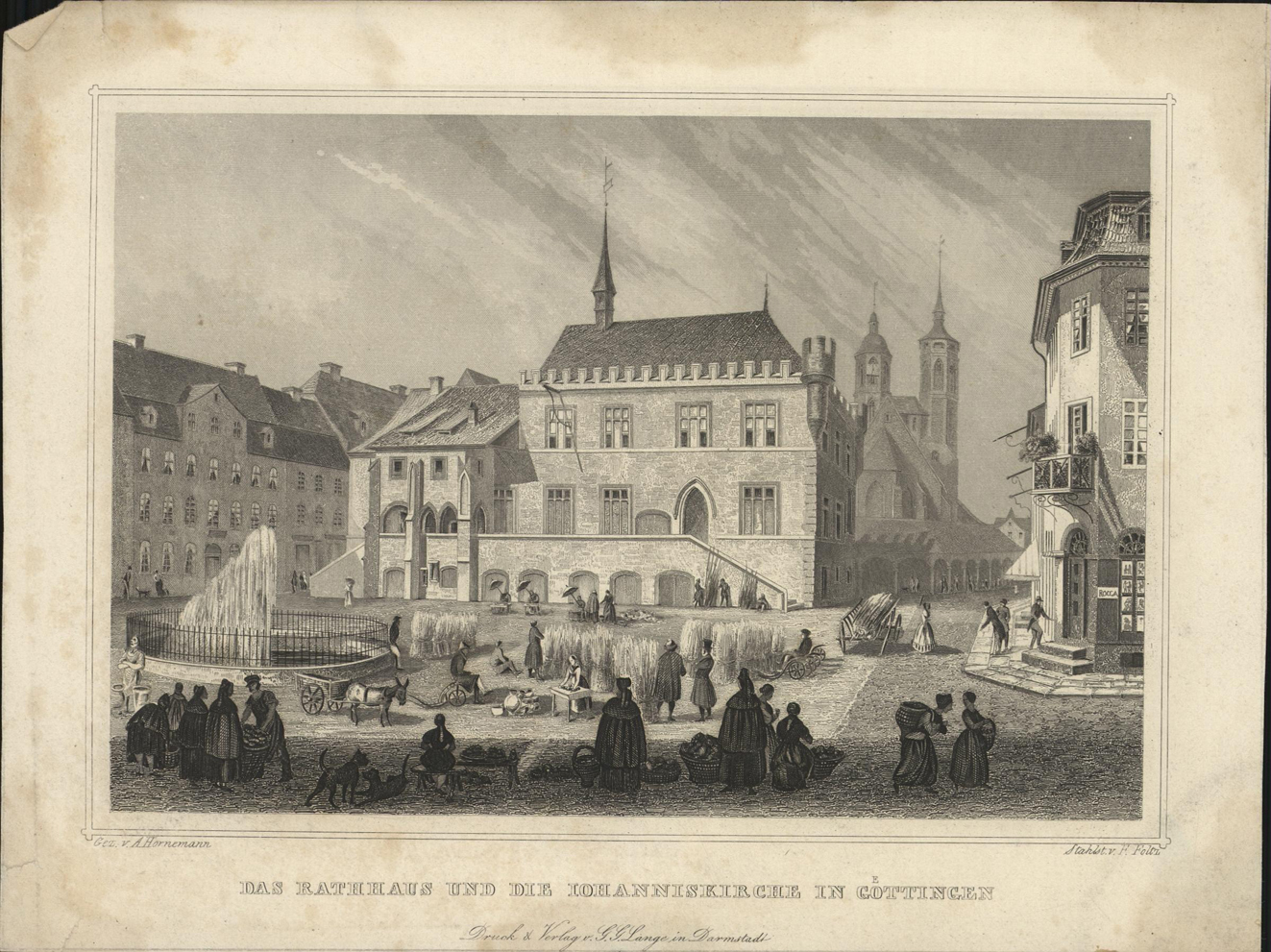 Das Rathhaus und die Iohanniskirche in Goettingen
