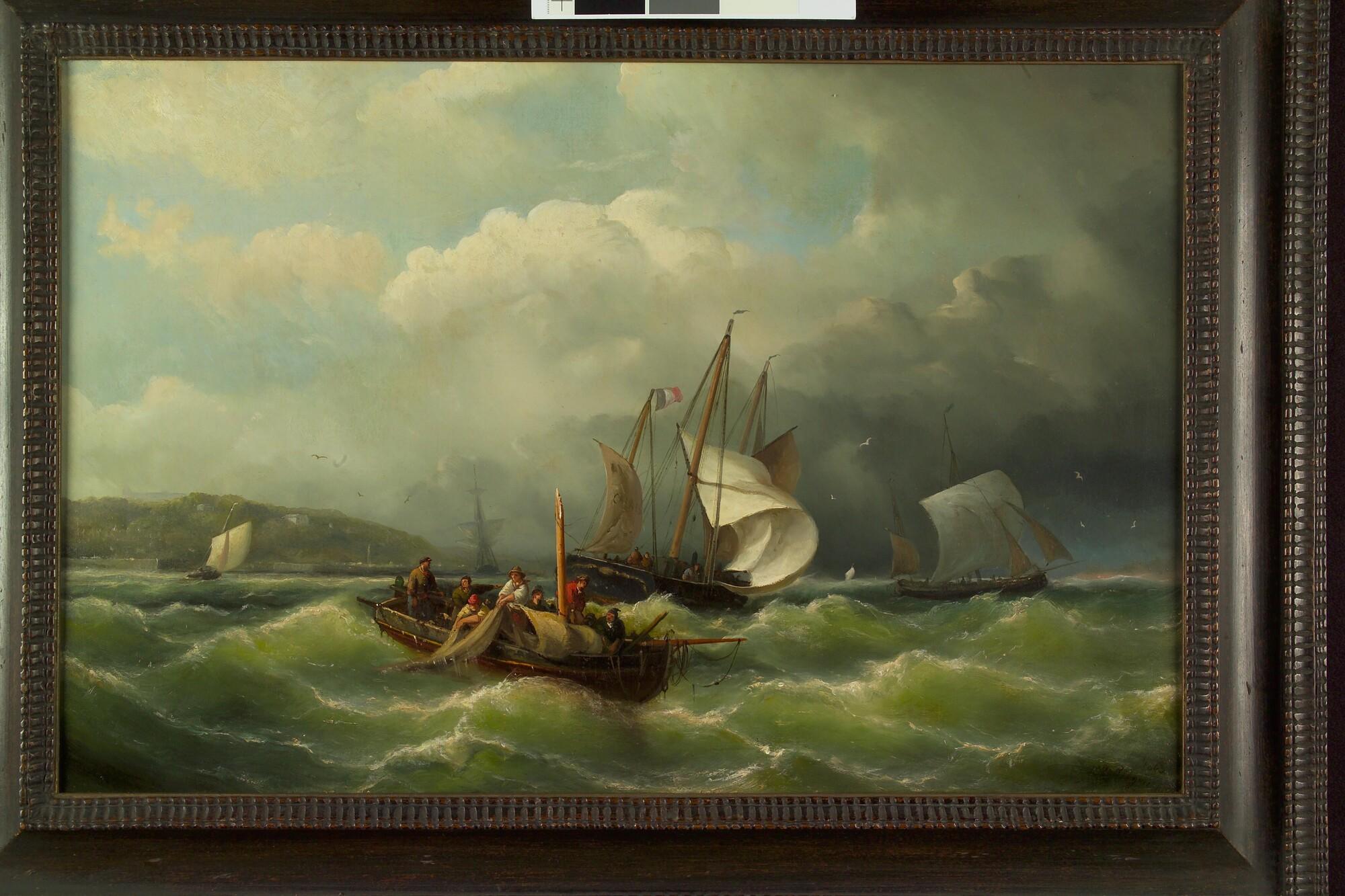 Nagasaki-prent: Driemaster met aan de masten de Nede...