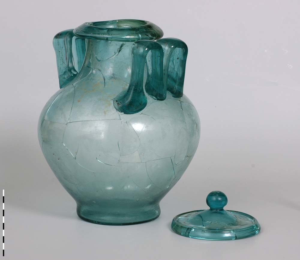 Urn met deksel van donkergroen glas uit de Romeinse ...