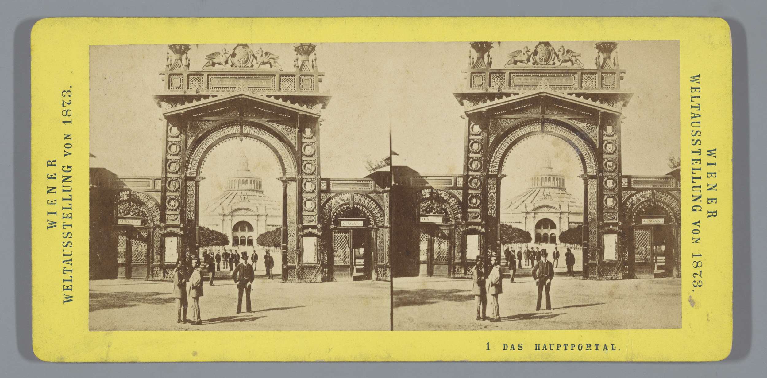 Toegangspoort met daarachter de Rotunde op de Wereld...