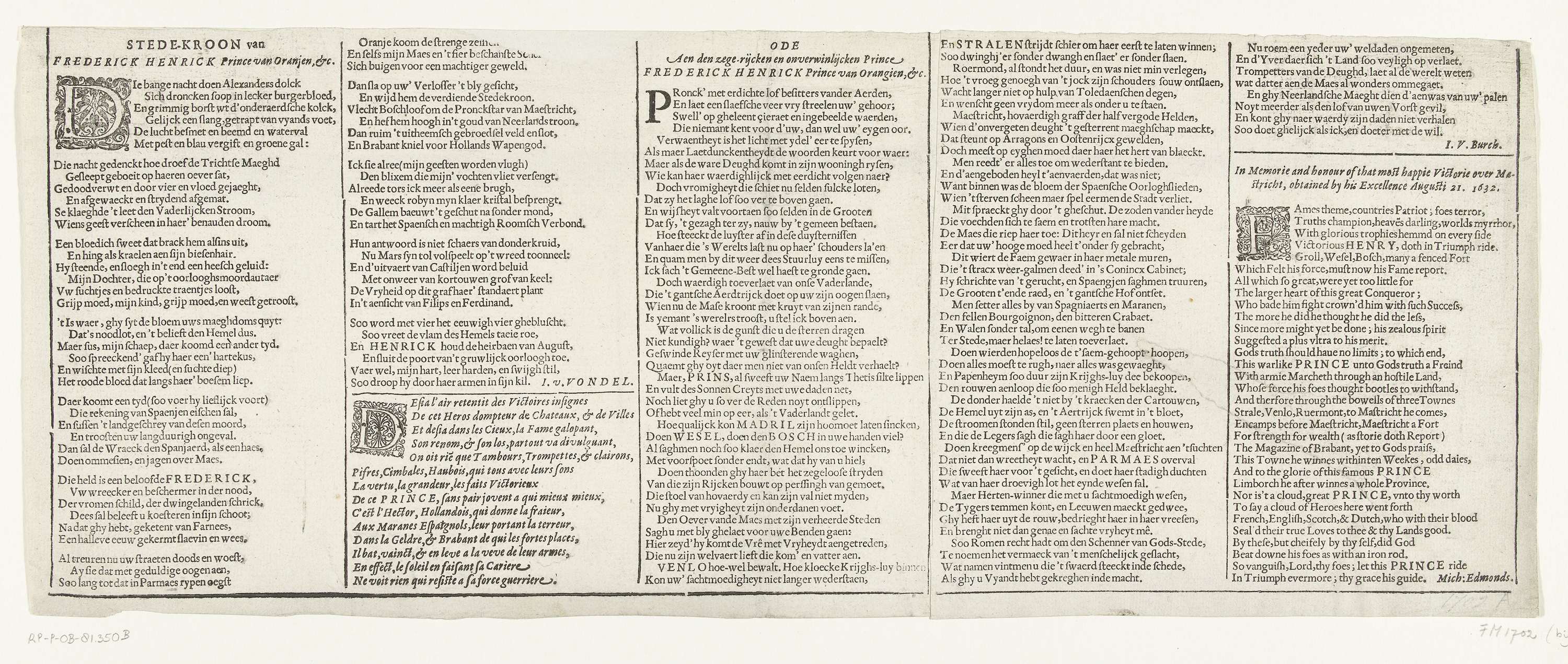 Tekstblad bij de prent van Frederik Hendrik die in e...