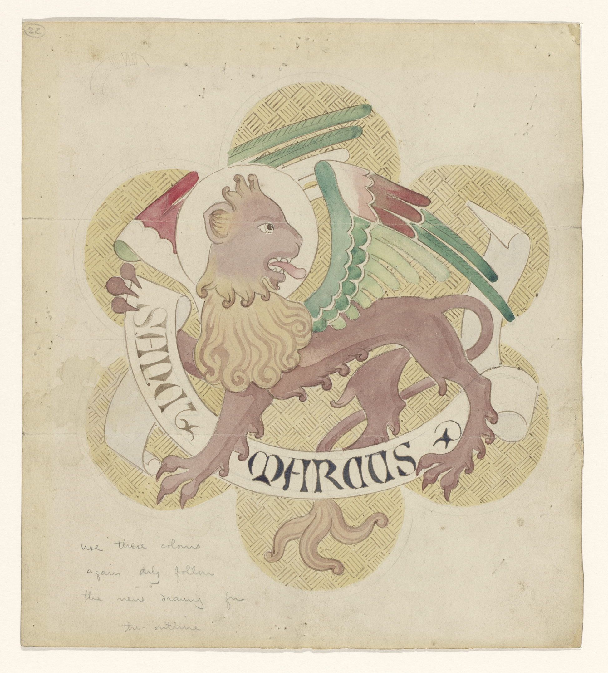 Ontwerp voor borduurwerk met de evangelist Marcus