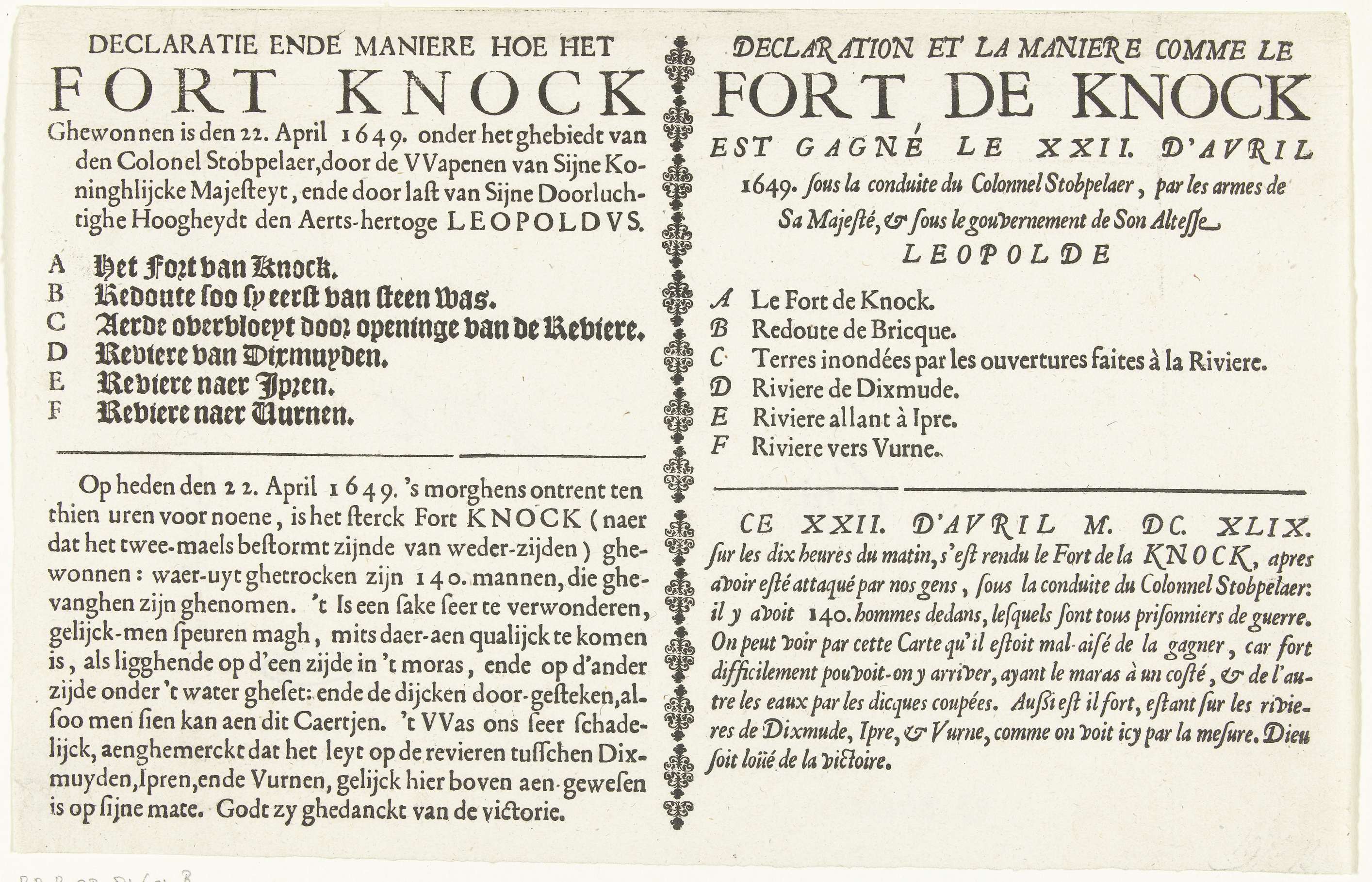 Tekstblad bij de prent van het beleg van Ieper, 1649