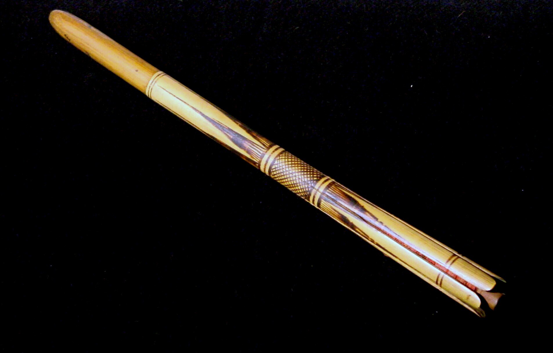 Opiumpijp, vervaardigd van bamboe en een patroonhuls