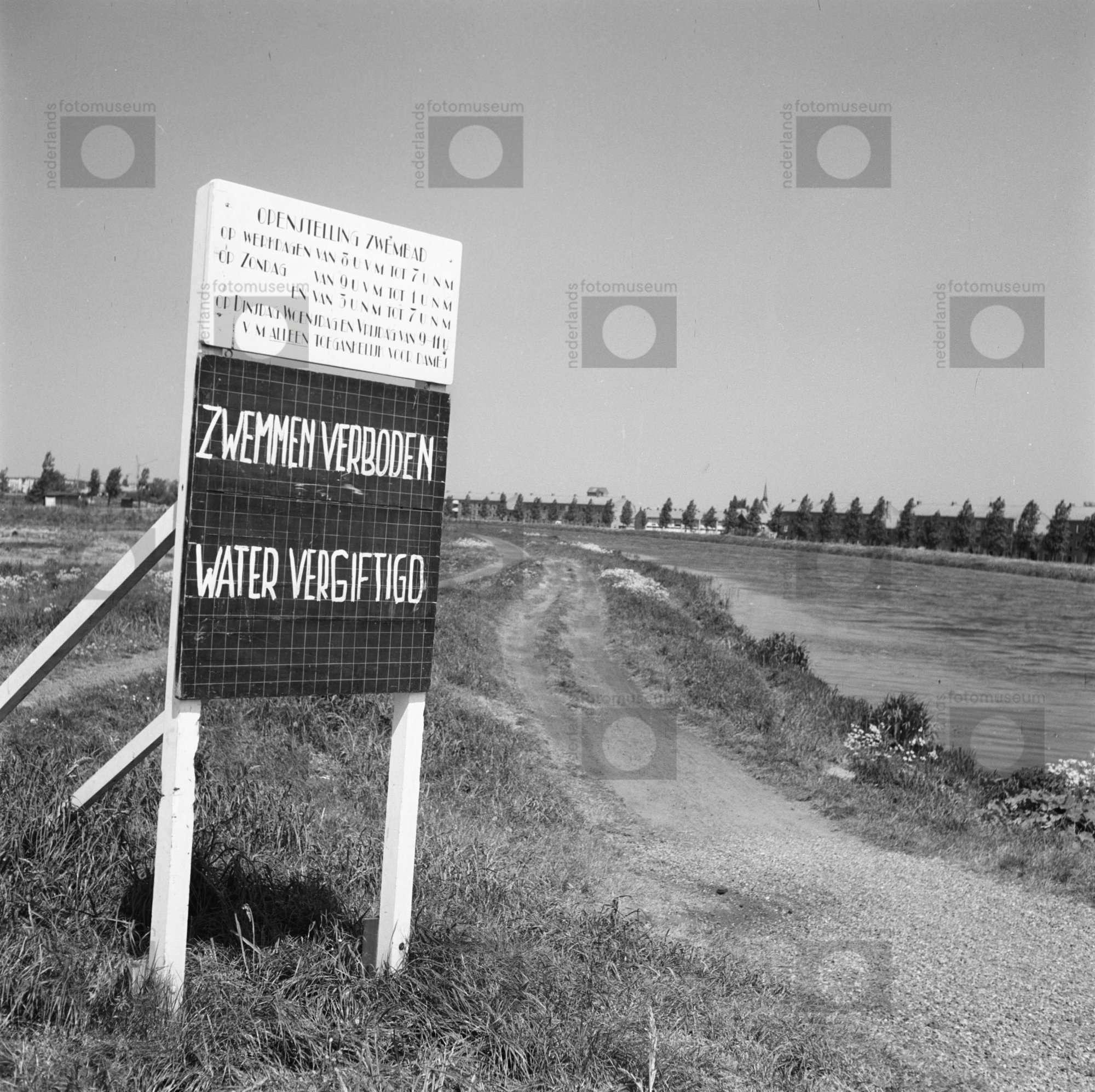 Bord: Zwemmen verboden. Water vergiftigd.