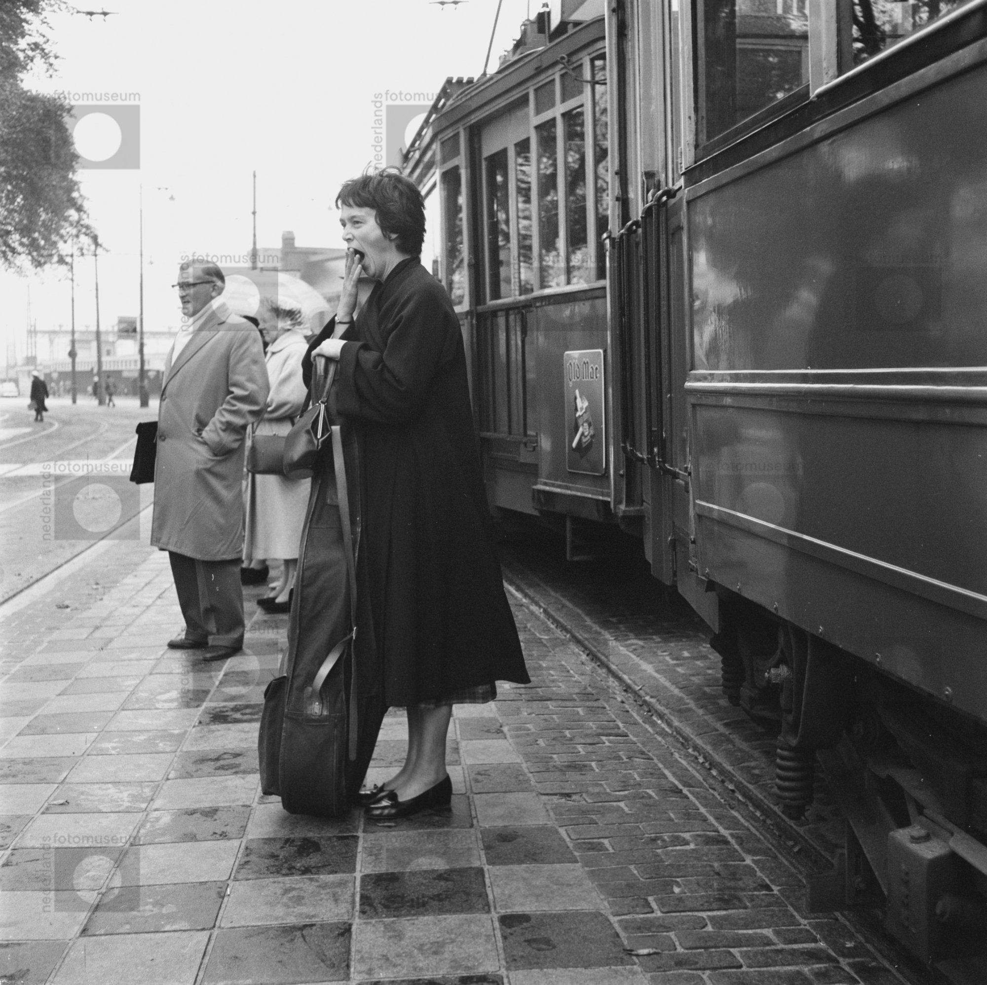 Amsterdam. Vrouw staat op de tramhalte voor het Cent...